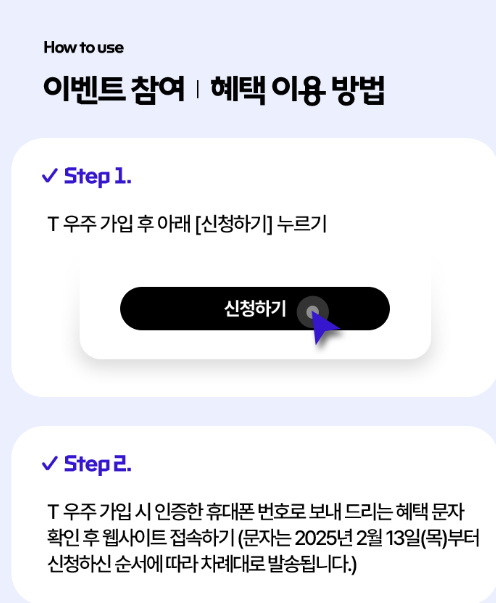 ✔ 신청은 T우주 앱 또는 T우주 홈페이지에서 간단히 가능