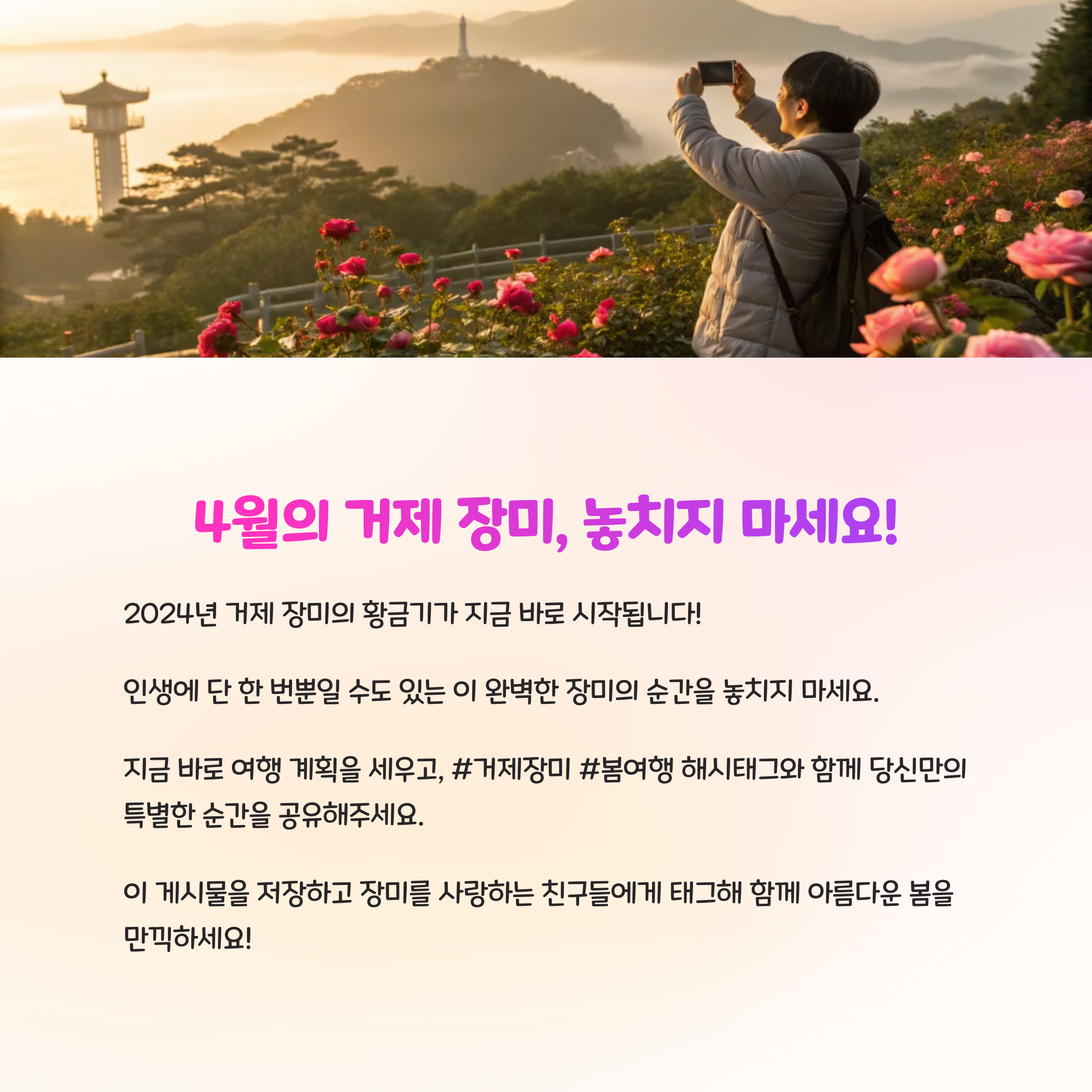 📸 지금 떠나야 진짜 인생샷을 건질 수 있어요. 올해 봄, 거제로 장미 보러 가자 🌺