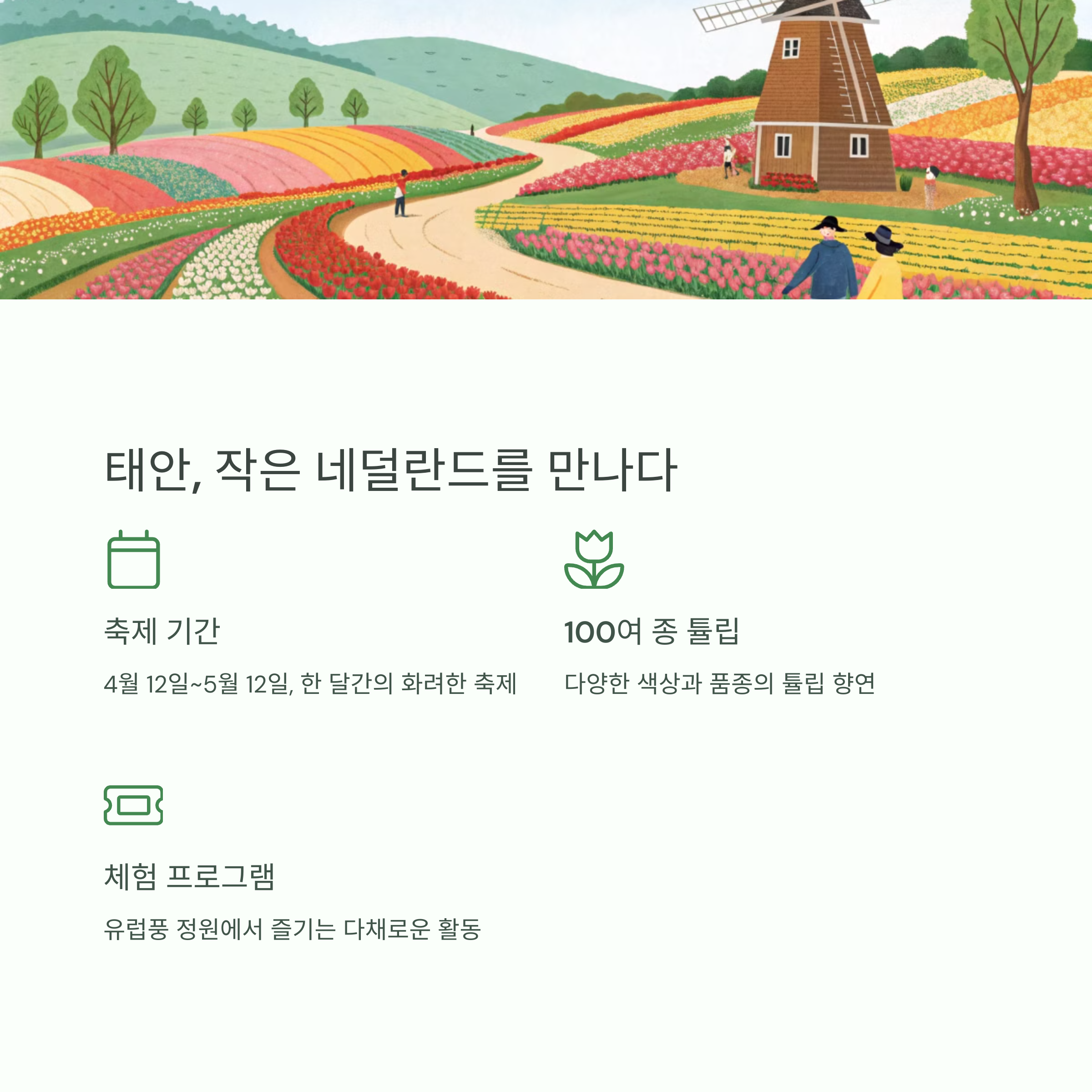 대부분 무료지만, ✔️태안 튤립축제는 유료입니다. 각 지역별 공식 홈페이지를 참고하세요.