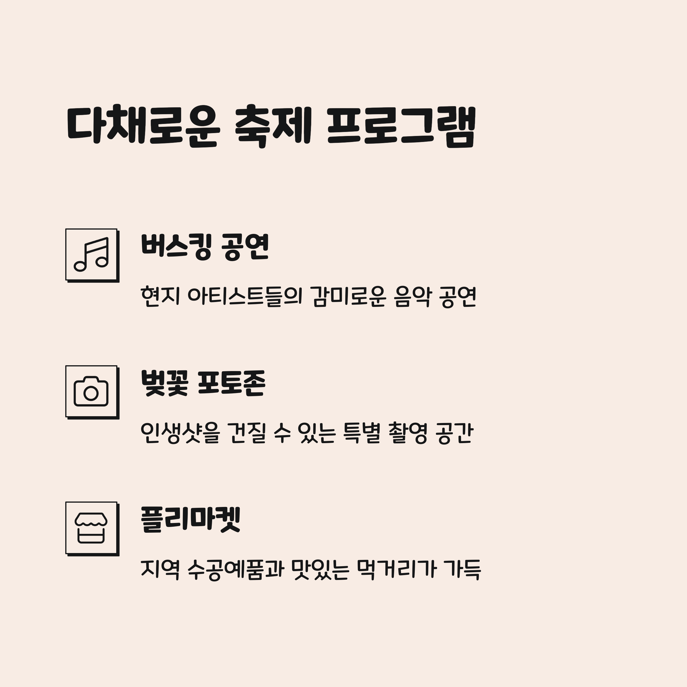 | 축제 기간 | 장소 정보 | 주요 프로그램 |