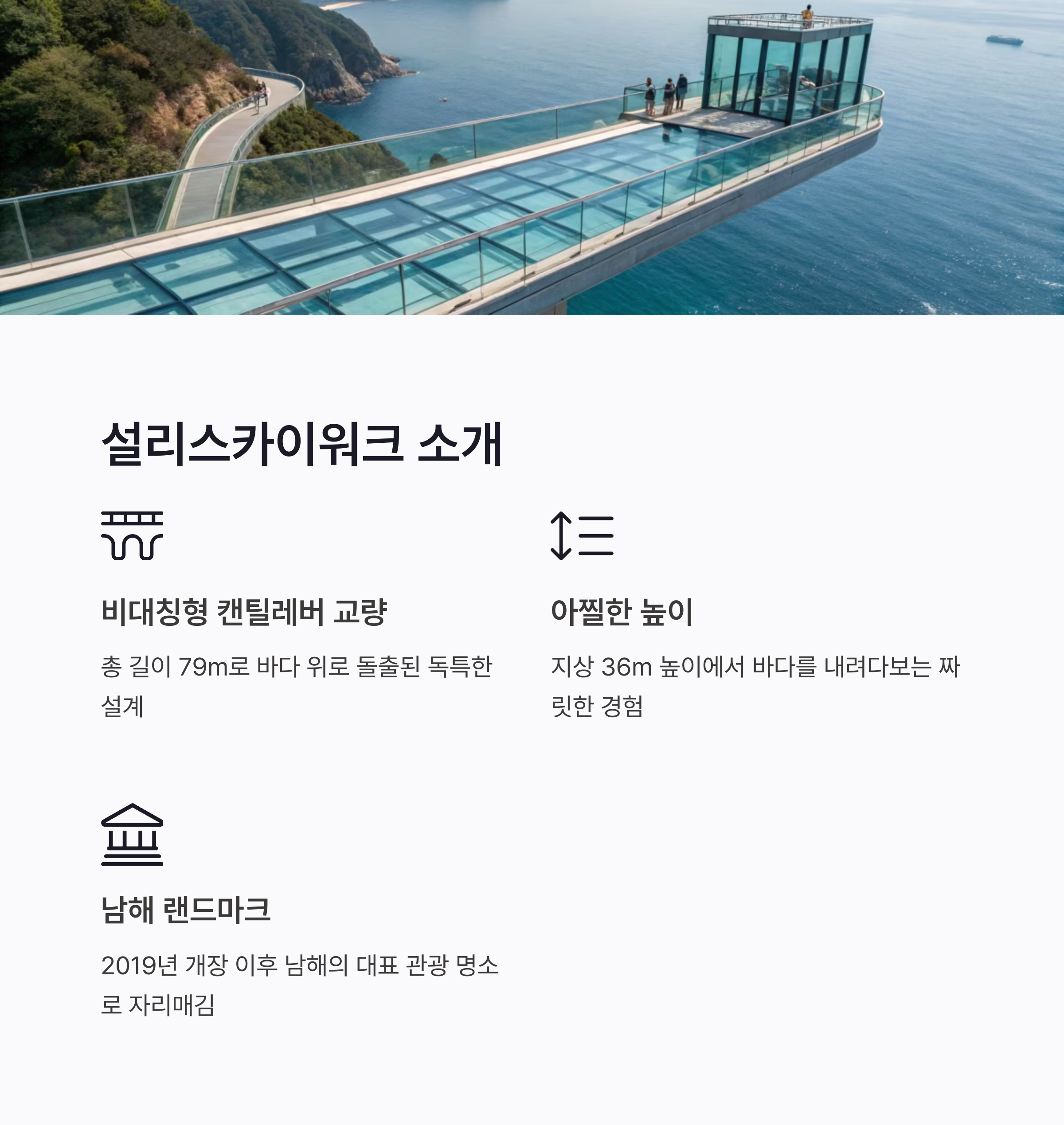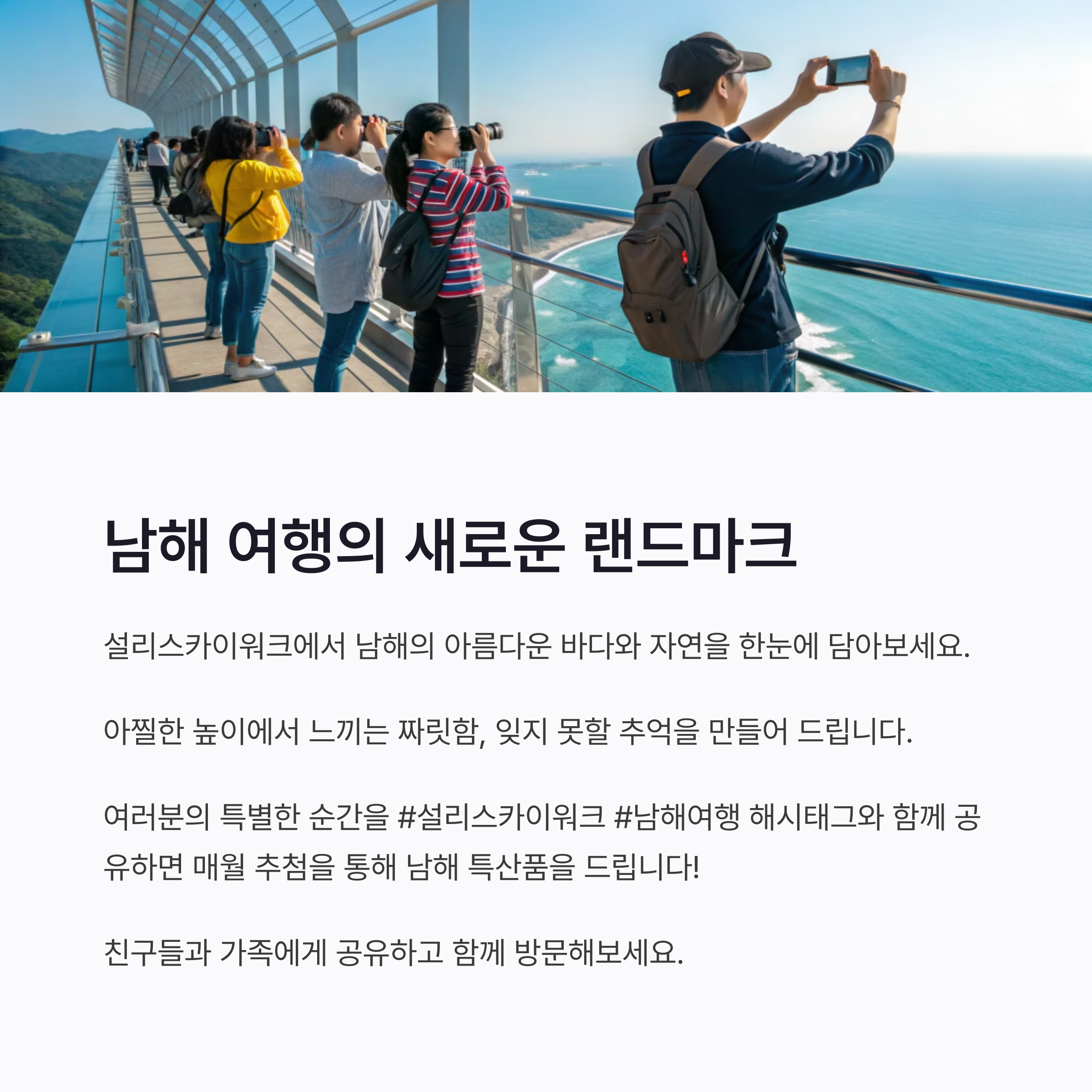 설리스카이워크는 남해의 대표적인 관광 명소로 2019년에 개장했습니다.