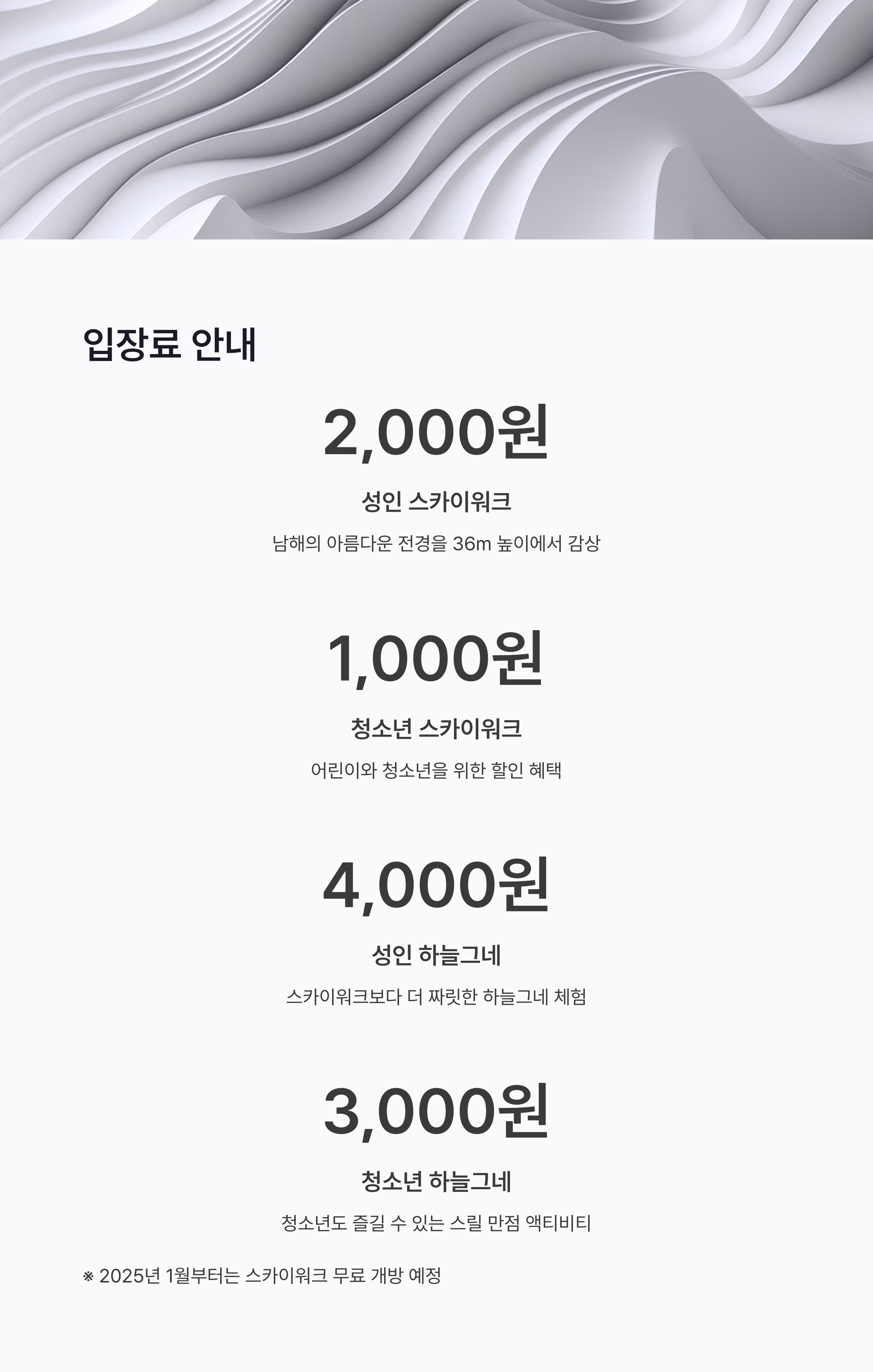 남해의 아름다운 전경을 감상하며 짜릿한 체험을 즐겨보세요!