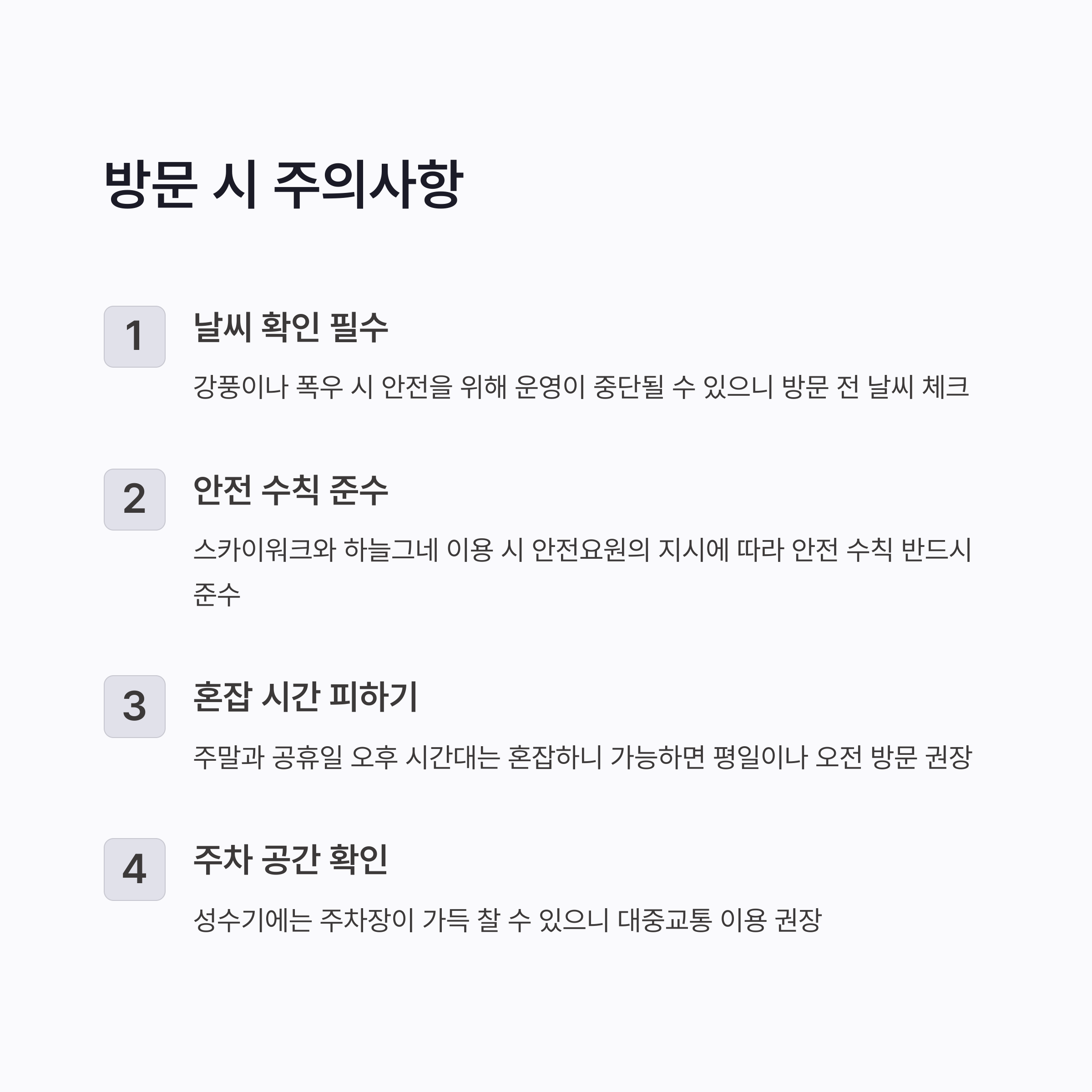 설리스카이워크와 하늘그네 체험을 더욱 즐겁게 만들기 위해 몇 가지 팁을 알려드립니다.