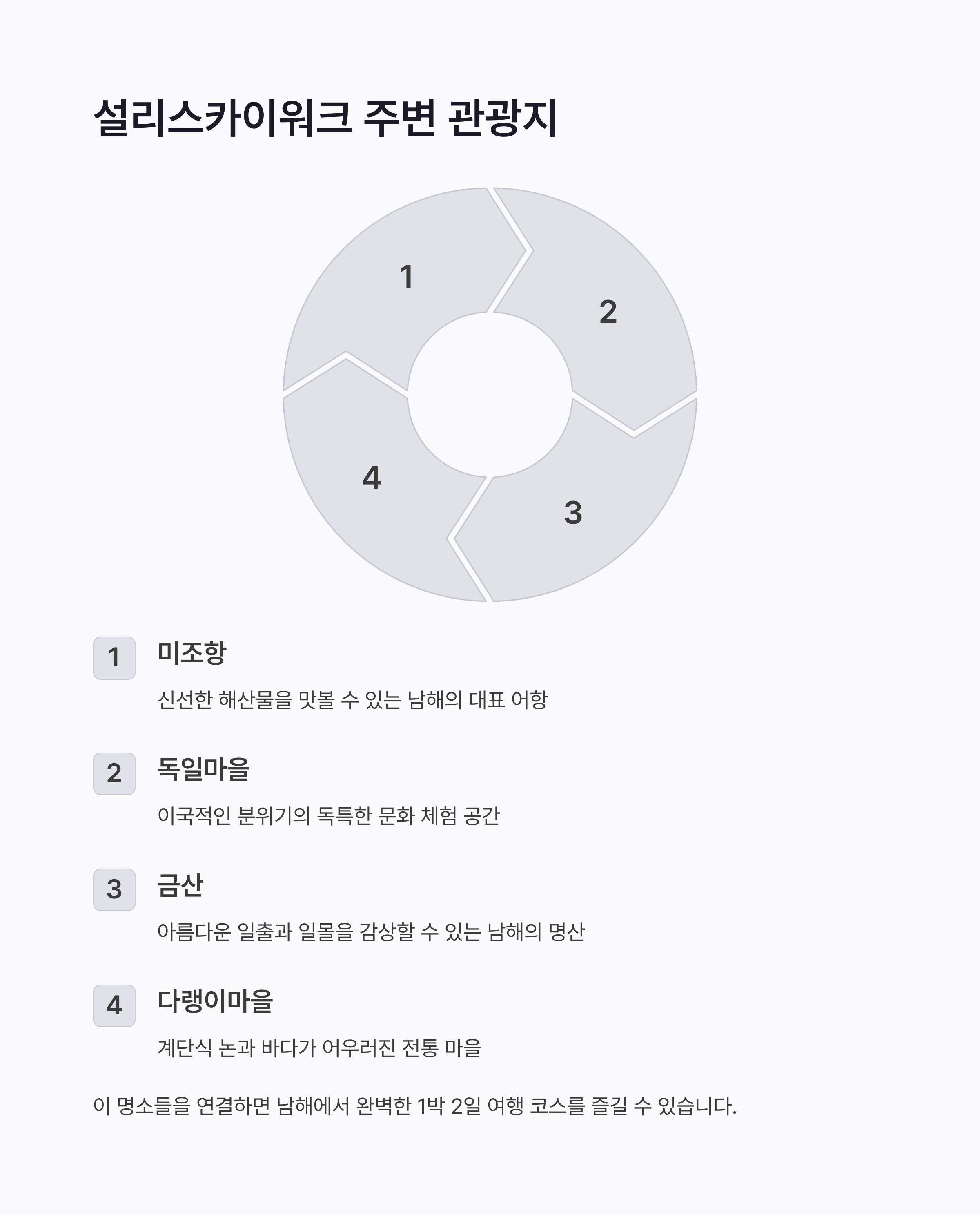 남해 1박 2일 여행을 알차게 보내려면 다음 일정을 추천합니다.