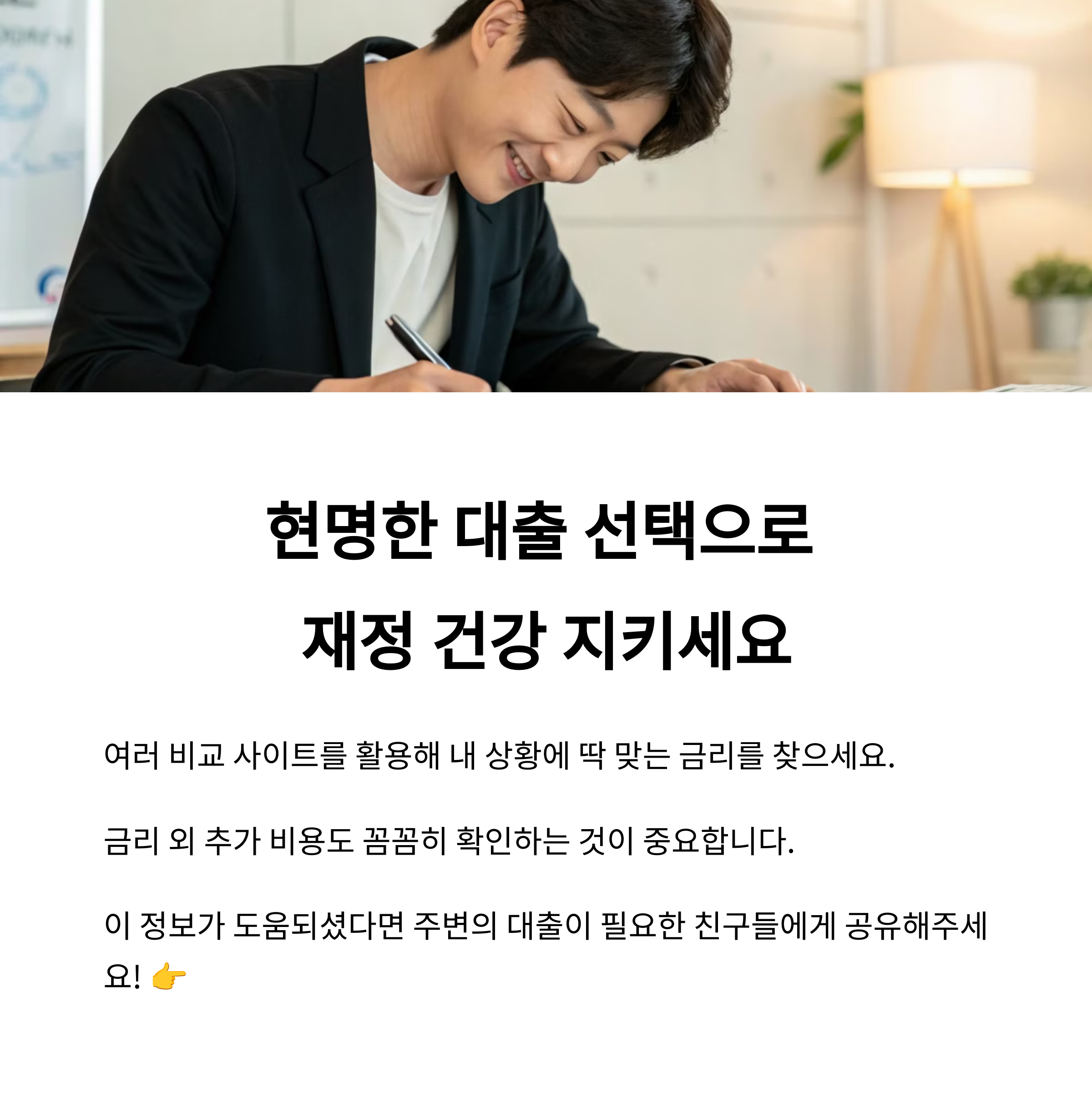 신용 점수와 대출 조건을 꼼꼼히 따져본 후 본인에게 가장 유리한 대출 상품을 선택하세요.
