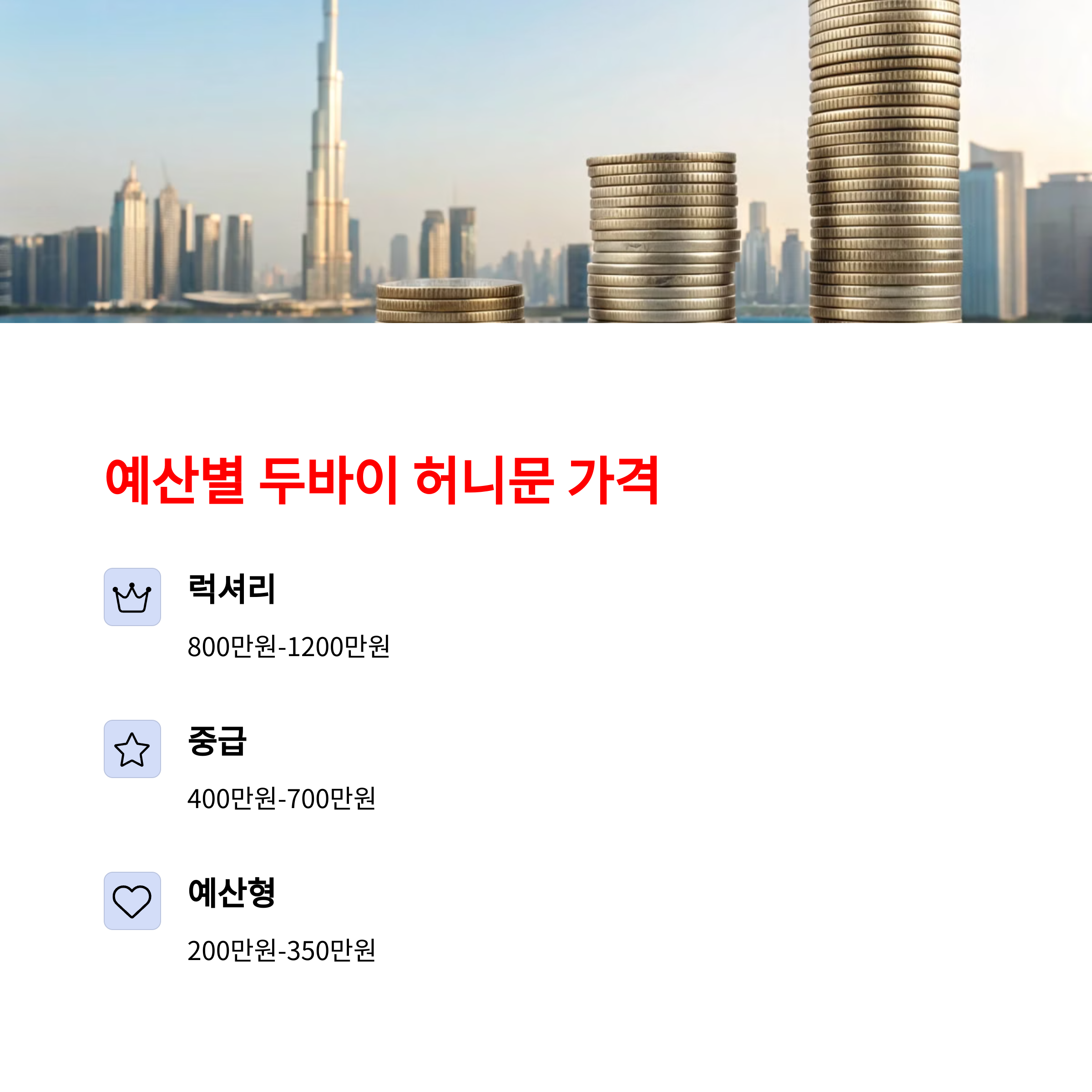 두바이는 다양한 선택지를 제공하는 도시이기 때문에 예산에 맞는 최적의 플랜을 짜는 것이 관건입니다.🎯