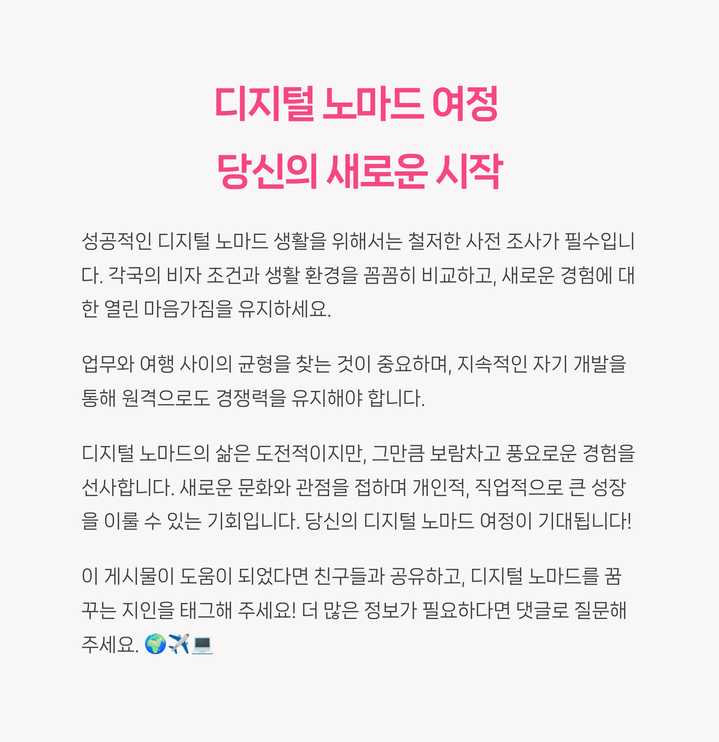 여러분도 오늘부터 디지털 노마드의 여정을 진지하게 계획해 보시길 바랍니다.👍