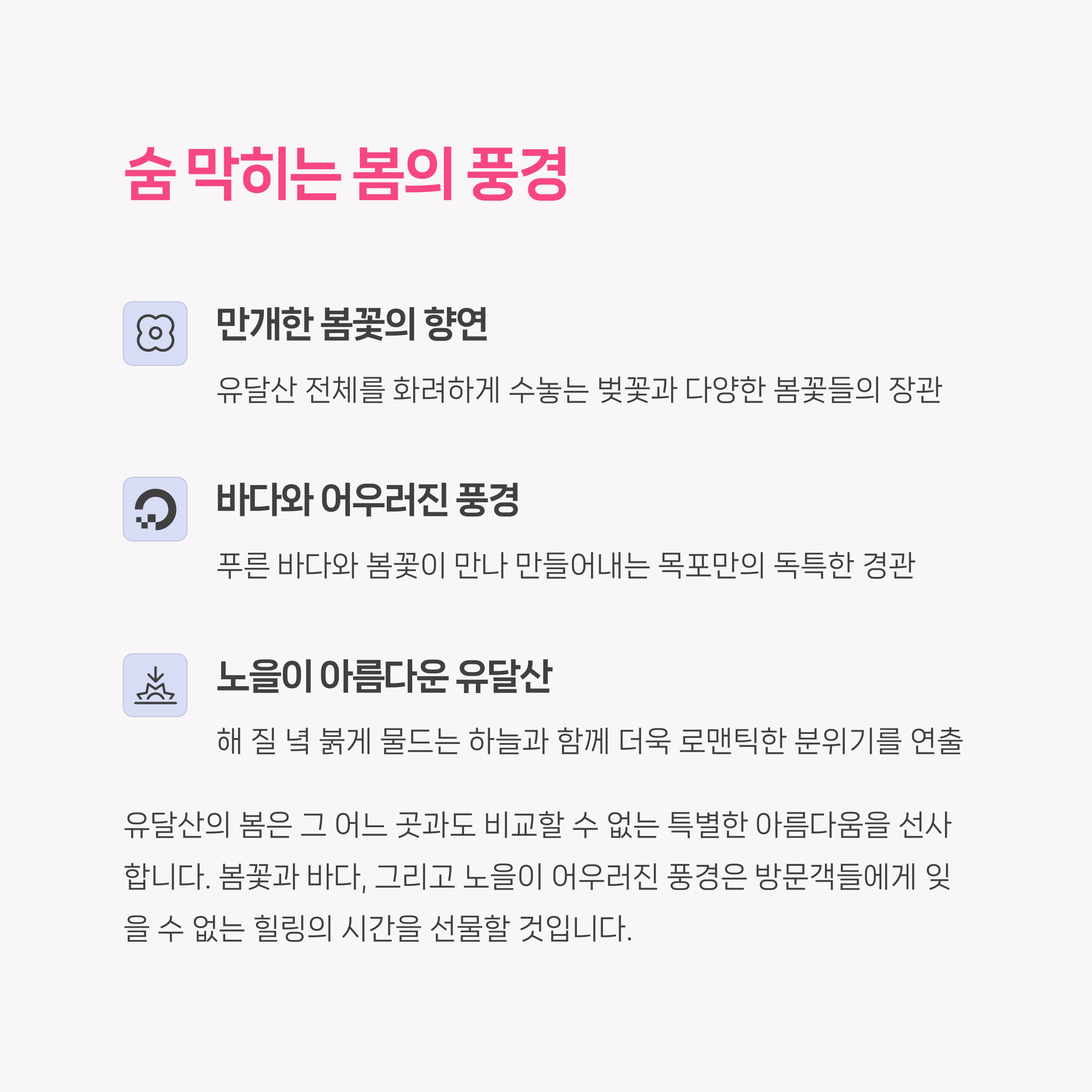 | 목포의 자연 | 봄꽃과 함께하는 힐링의 시간 |