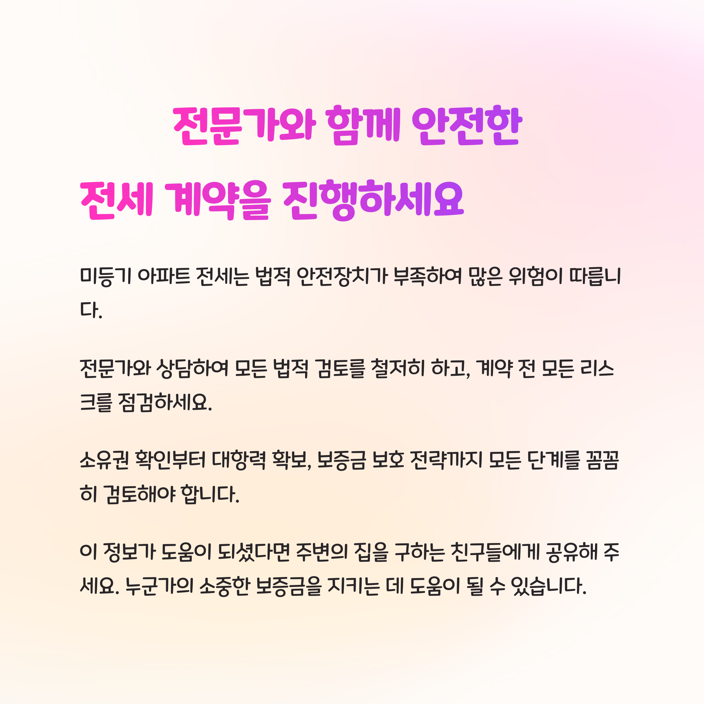 미등기 아파트 전세계약은 저렴한 전세금이라는 유혹이 있지만, 그만큼 법적 리스크도 큽니다.