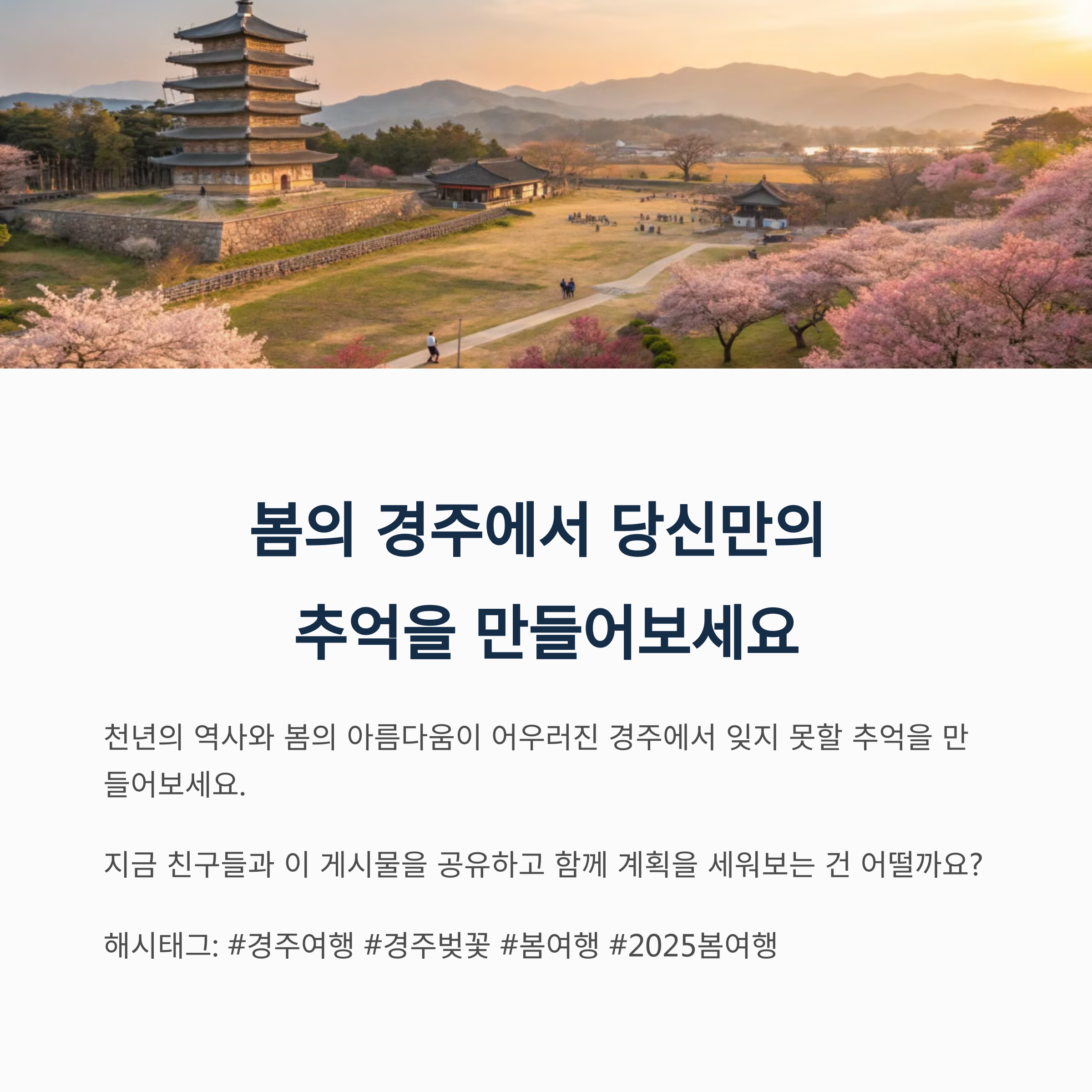 경주의 봄을 온전히 즐기고 싶은 분들에게 추천하는 완벽한 일정입니다.