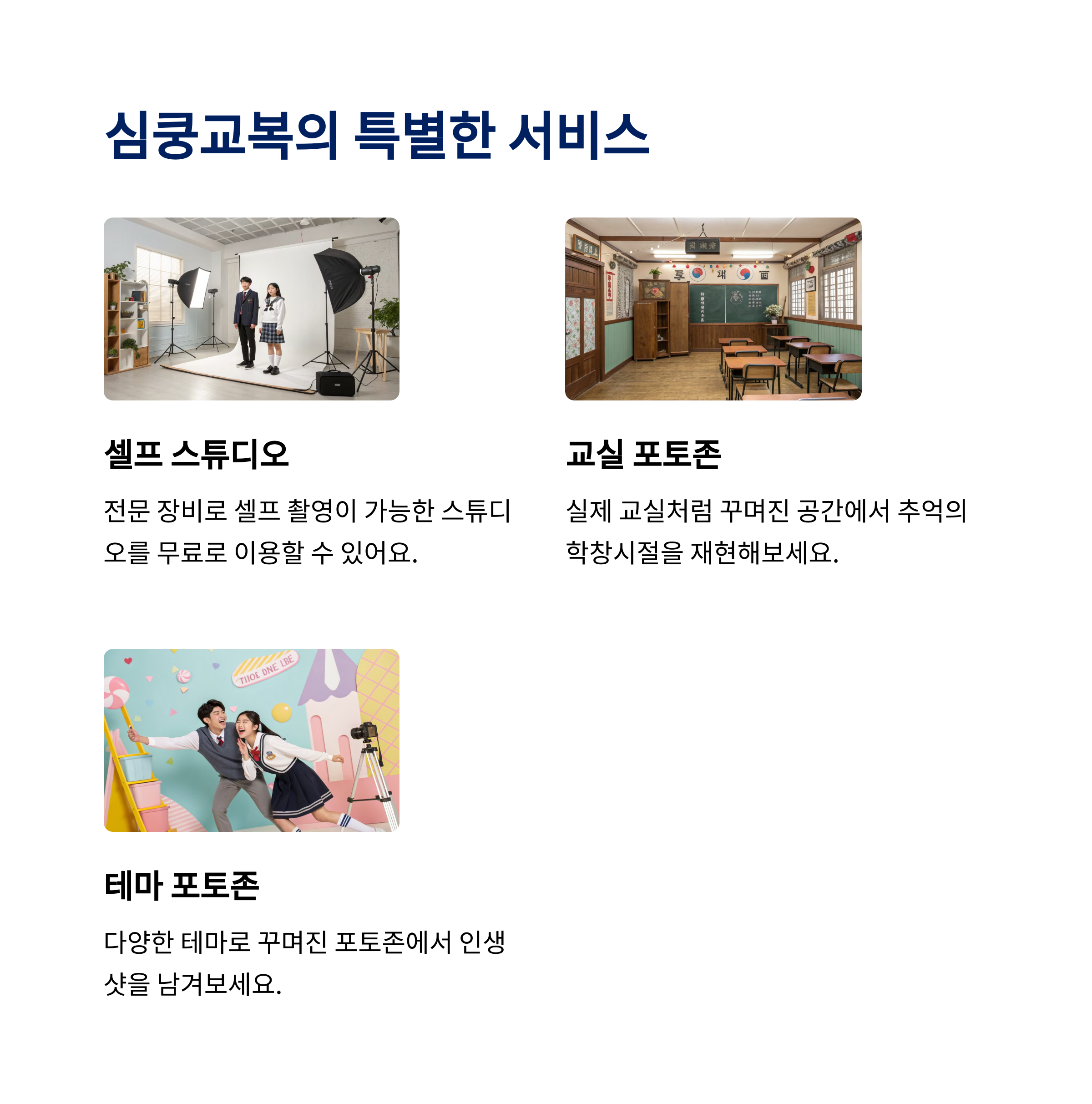 | 기본 교복 | 15,000원 | 블레이저, 셔츠, 스커트/바지 포함 |