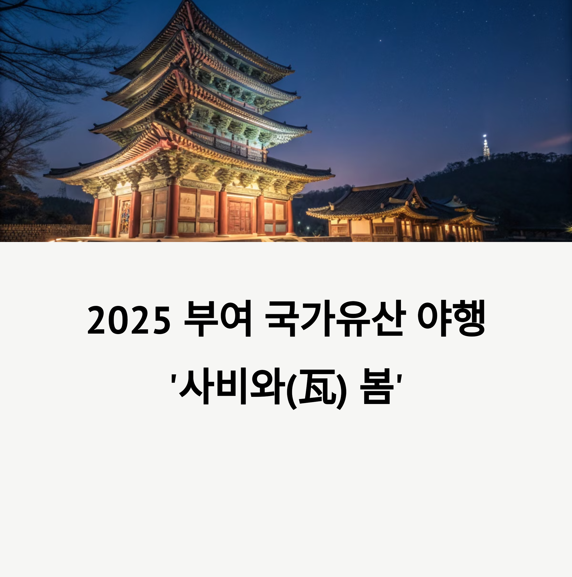 2025 부여 국가유산 야행 ‘사비와(瓦) 봄’은 백제의 수도였던 부여를 배경으로 펼쳐지는 야간 문화행사입니다.