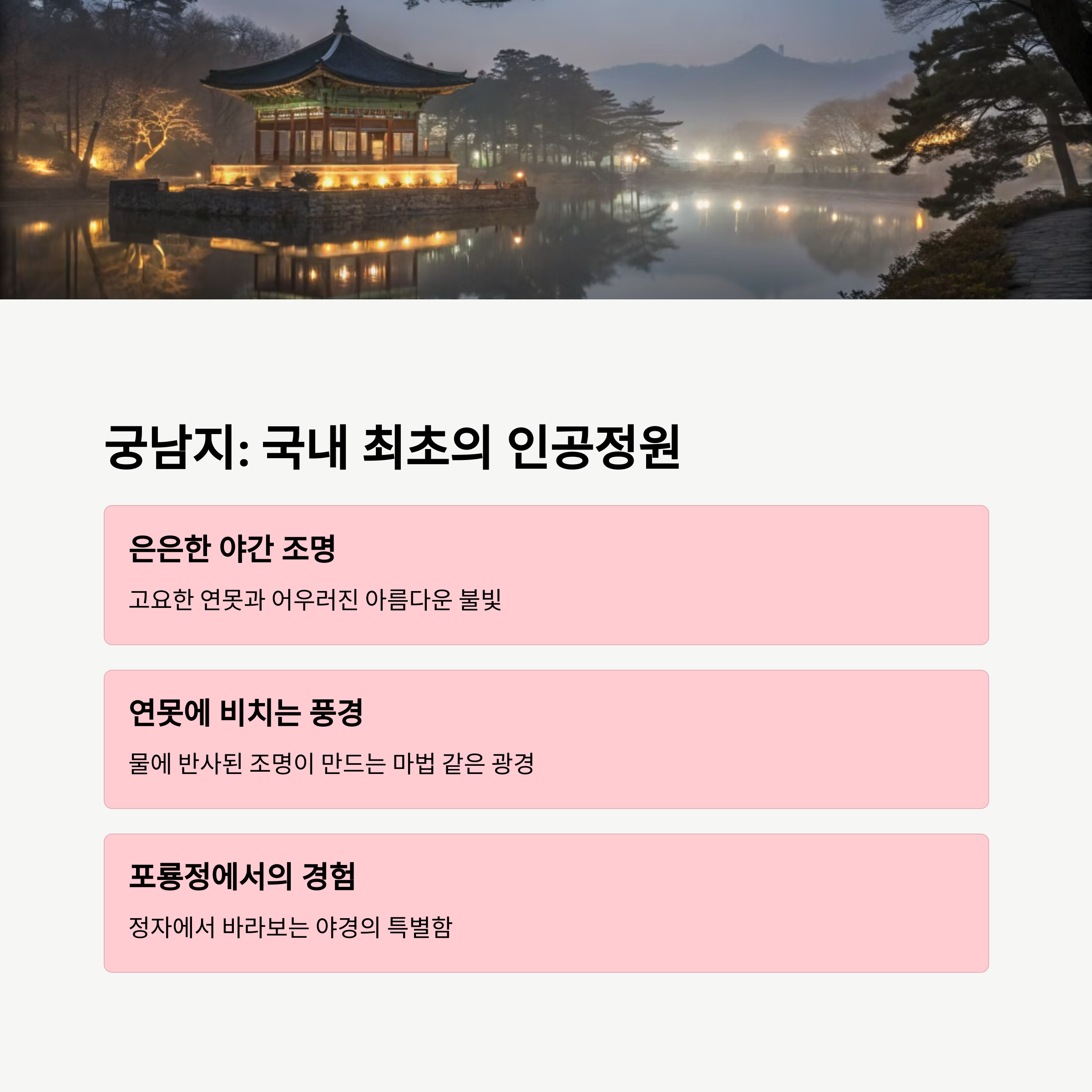 석탑, 연못, 궁궐… 그리고 그 위를 감싸는 은은한 조명까지.