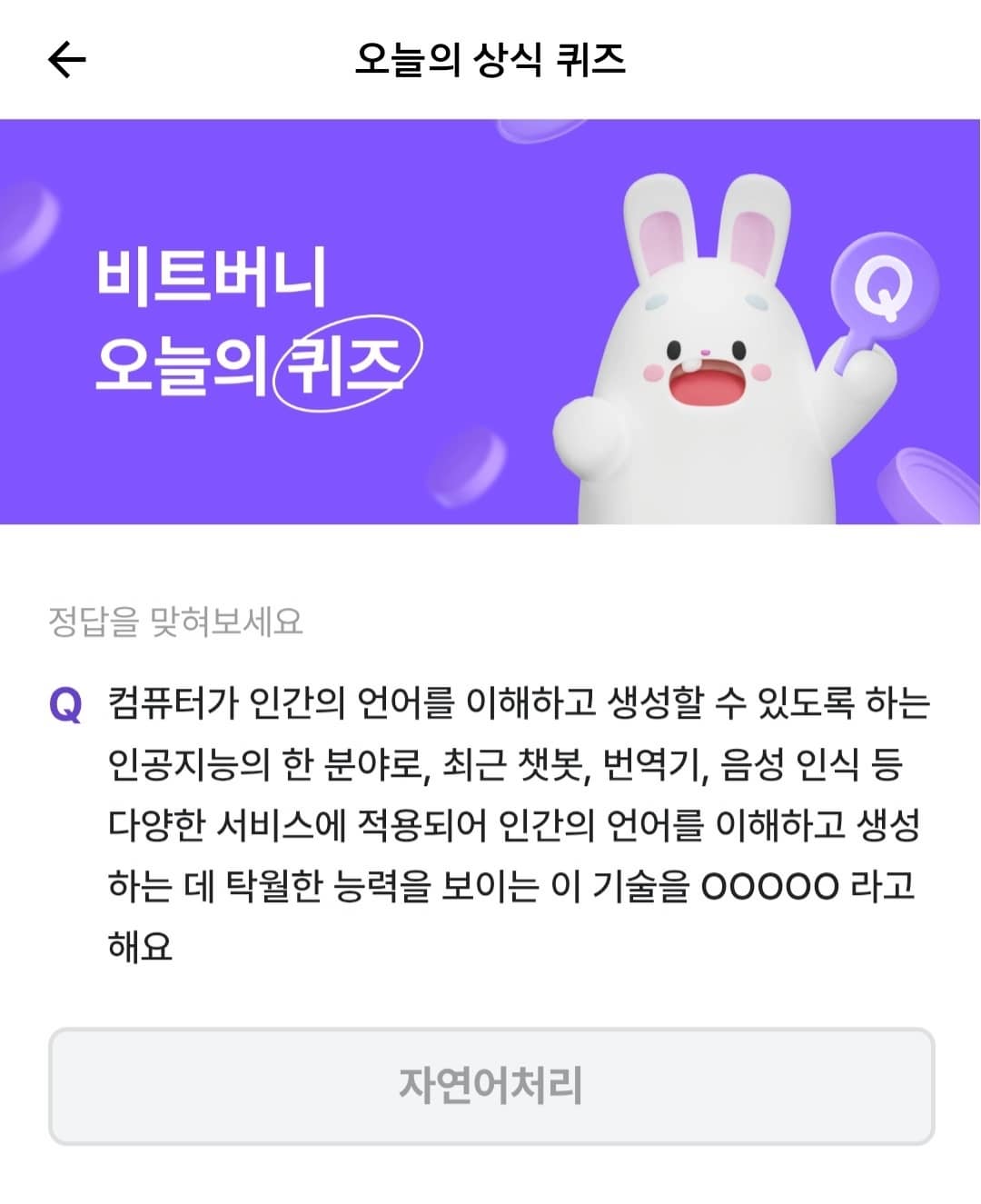 오늘의 정답은 "자연어처리" 였습니다!