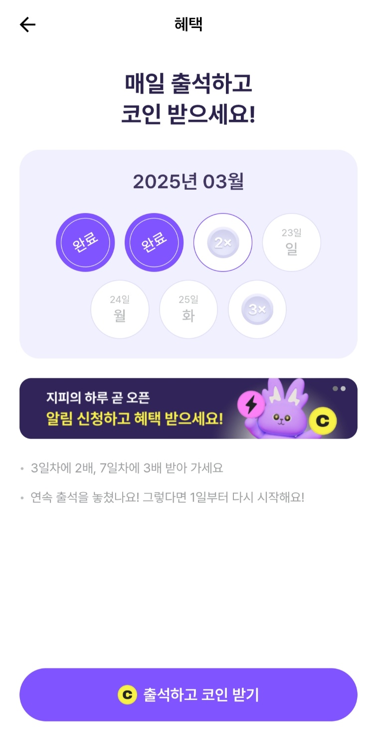 이제 매일 코인을 모으실 수 있도록 제가 도와드릴게요 ㅎㅎ