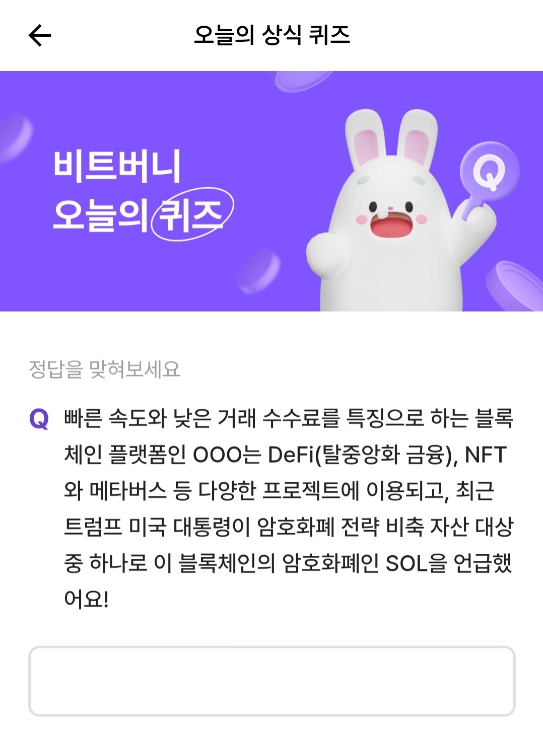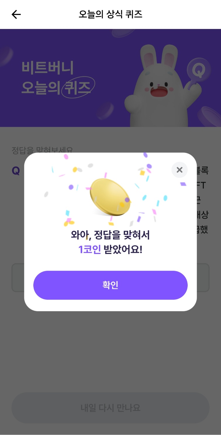 비트버니 퀴즈를 일어나셔서 매일 하나씩 풀어보시고 지식도 얻어가고 코인도 얻어 가보세요!!🤩