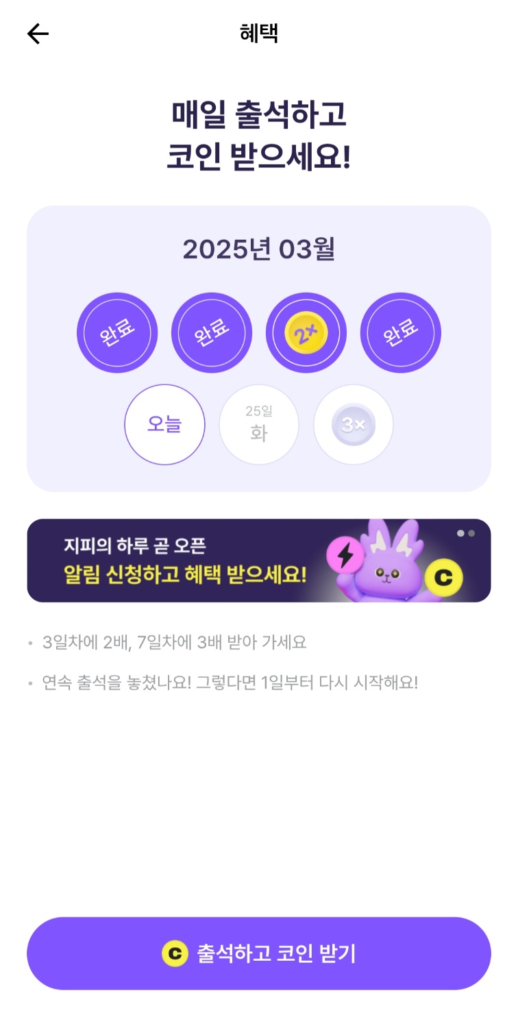 이제 매일 코인을 모으실 수 있도록 제가 도와드릴게요 ㅎㅎ