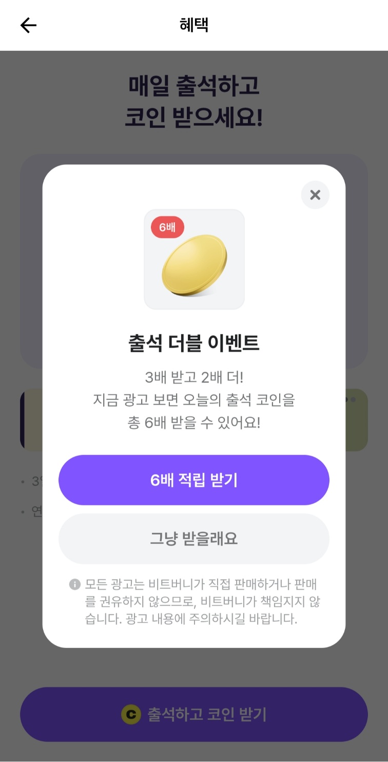✔️출석체크로 꾸준하게 비트버니 코인을 모으는 방법은 아주 기본적인 방법입니다.