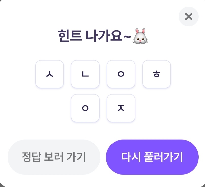 (초성힌트:ㅅㄴㅇㅎㅇㅈ)