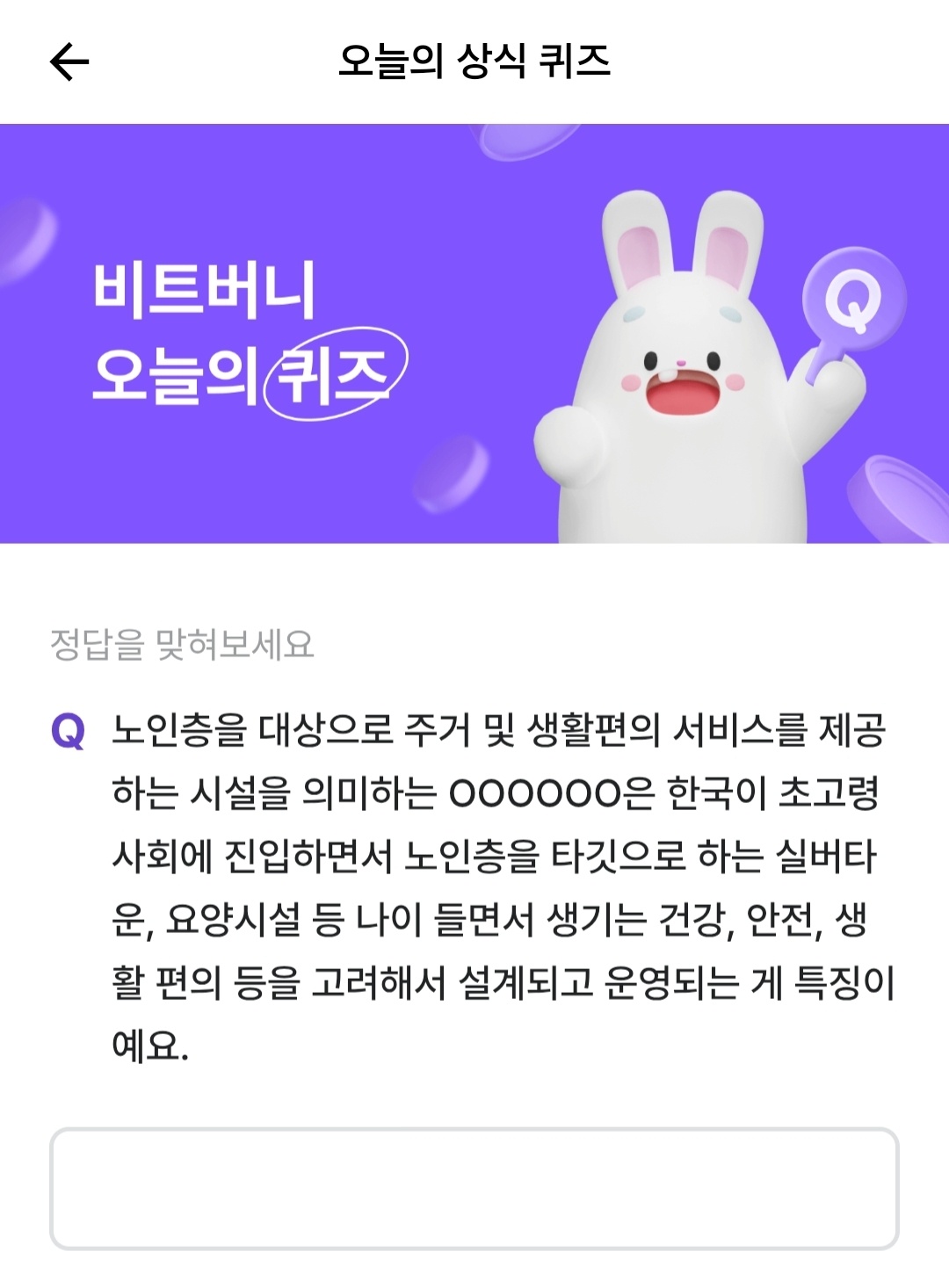 비트버니 퀴즈를 일어나셔서 매일 하나씩 풀어보시고 지식도 얻어가고 코인도 얻어 가보세요!!🤩