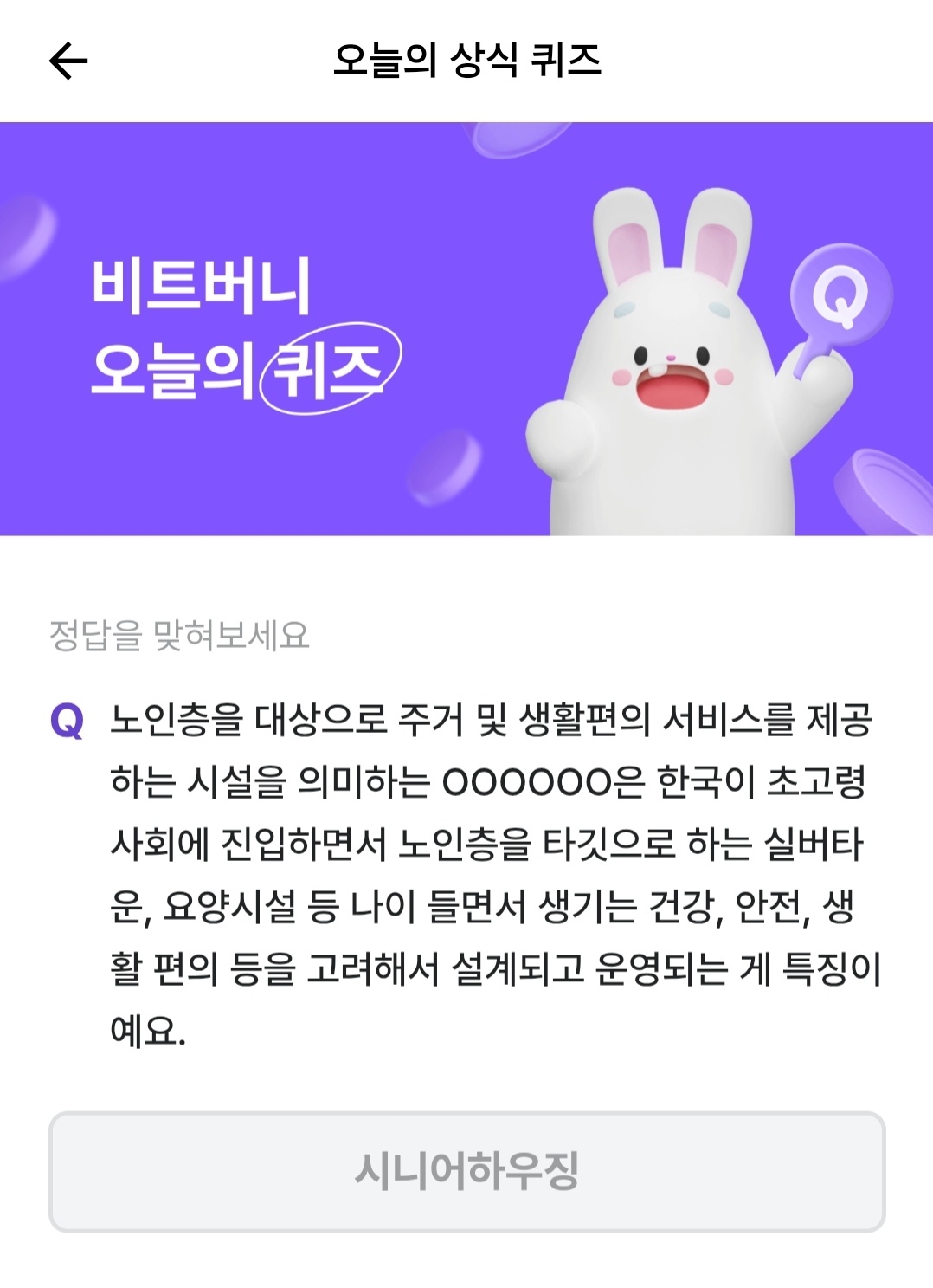 오늘의 정답은 '시니어하우징' 이였습니다!