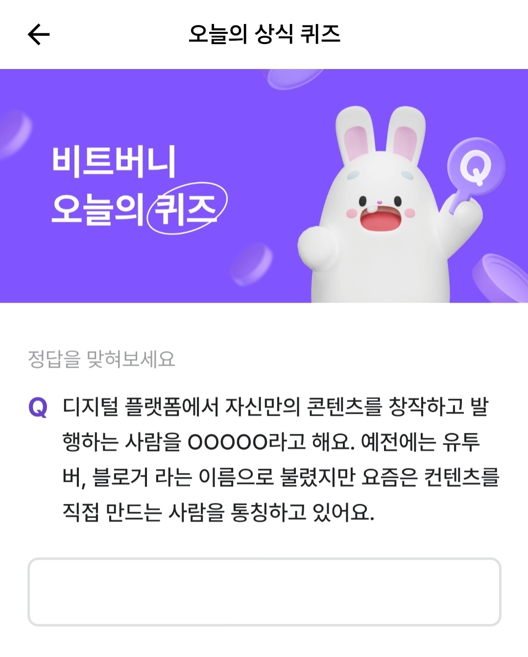 오늘의 비트버니 퀴즈 정답은 '크리에이터' 이였습니다!