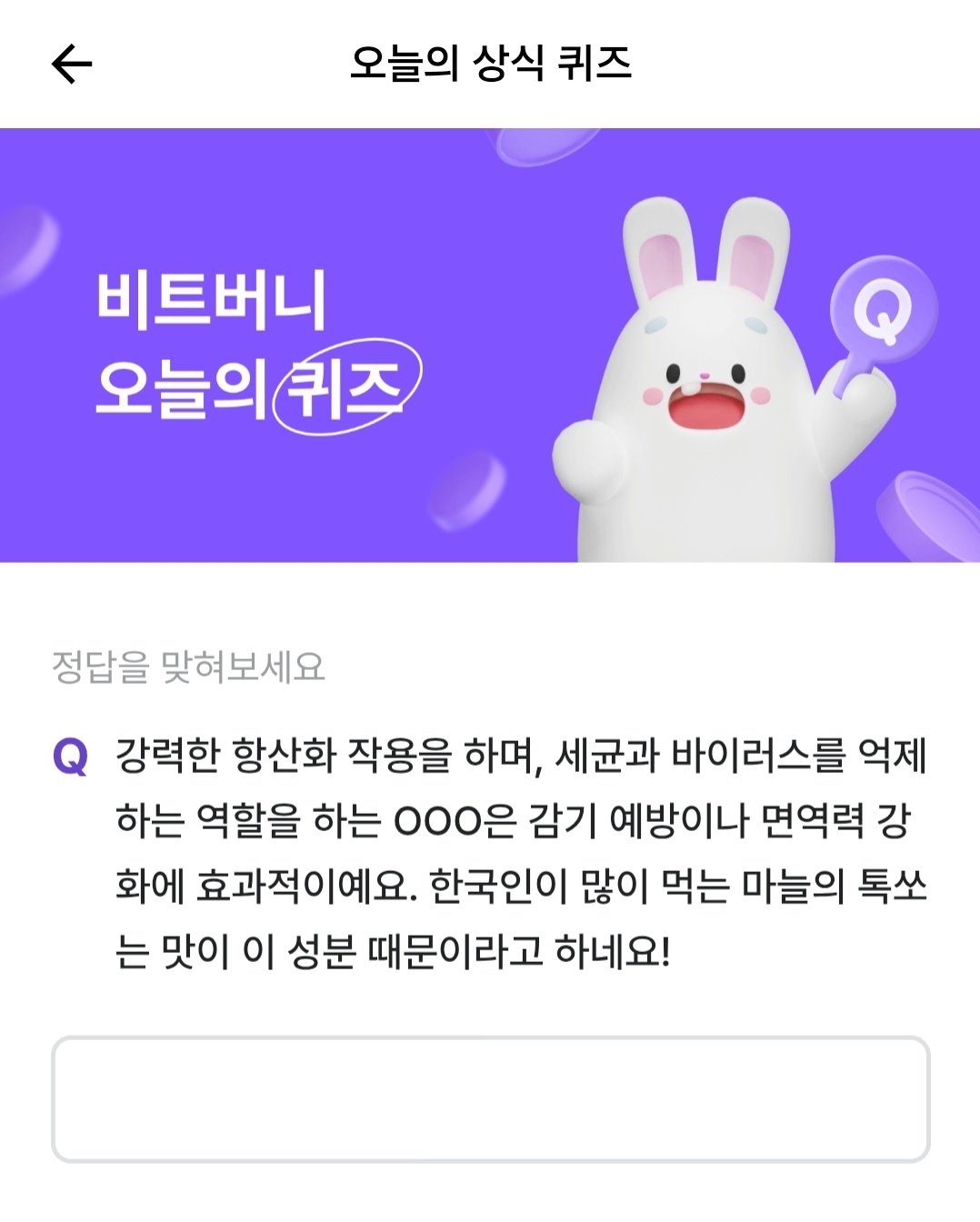 내일도 비트버니 퀴즈의 정답을 맞히고 코인 받고 정답 알려드리러 돌아오겠습니다!