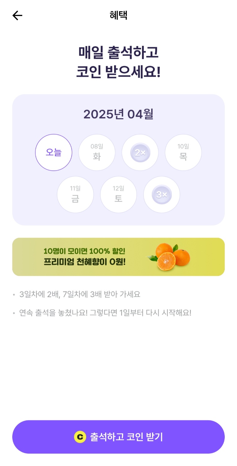 🚀매일 출석체크만 해도 코인을 주는데요. 오늘 저는 출석 더블 이벤트로 10 코인을 받았습니다!!
