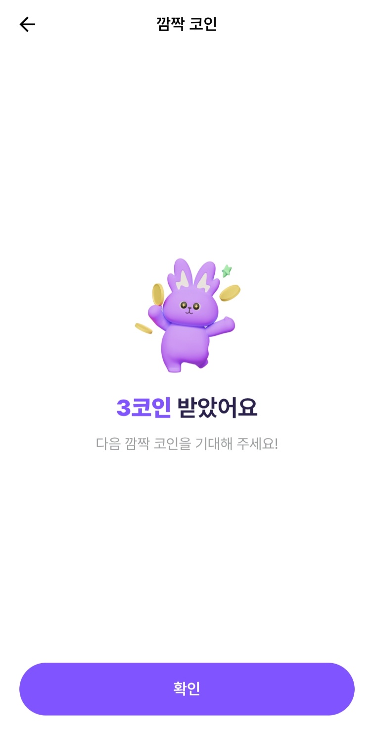 비트버니 퀴즈를 풀고 나면 이렇게 깜짝 코인이 등장을 합니다. 광고를 보고 나면 랜덤으로 보상이 주어지는 구조입니다!