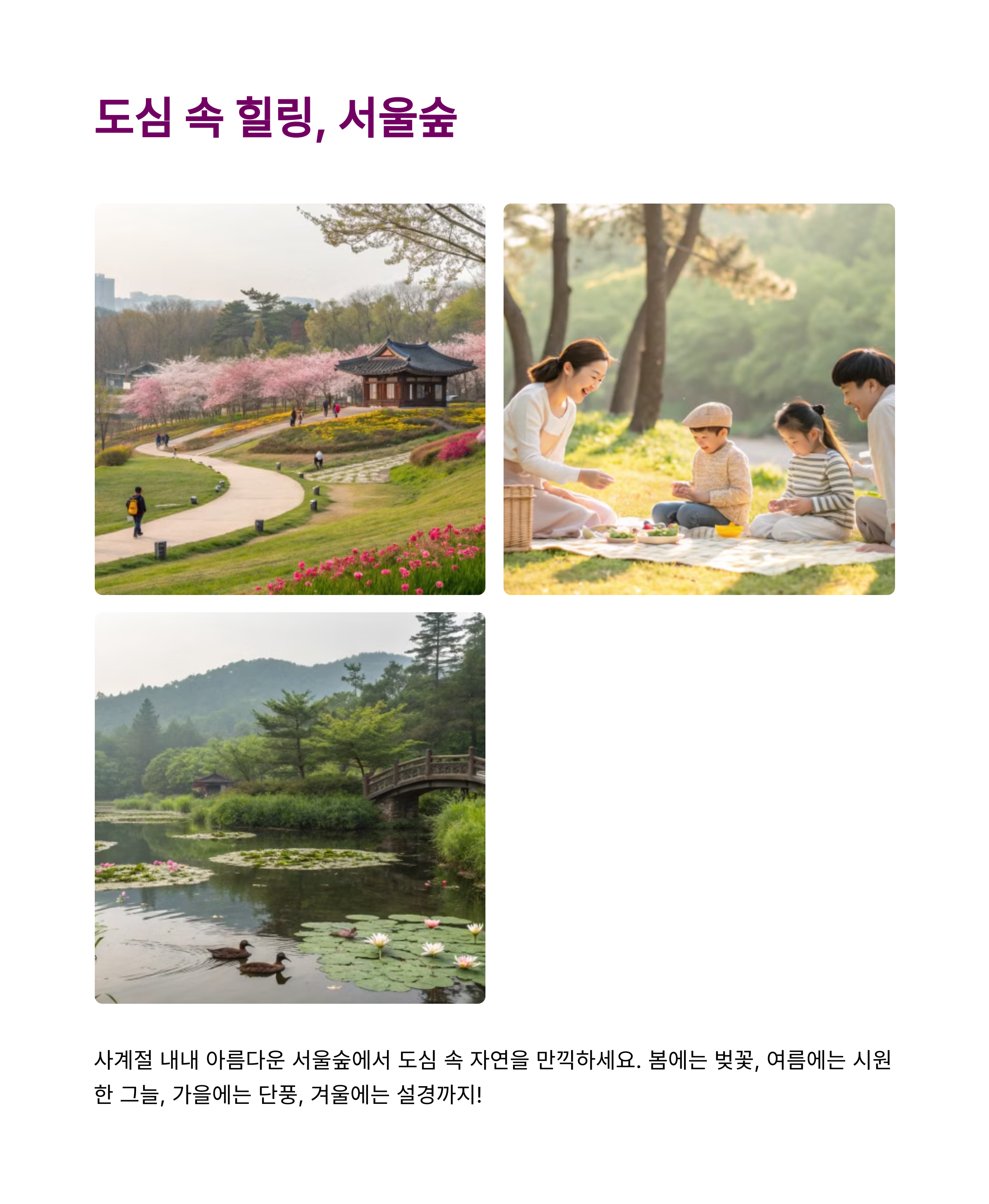 아이들과 함께, 혹은 혼자만의 힐링 시간으로도 딱 좋은 서울 나들이 추천 코스, 지금부터 함께 살펴봐요.🤗