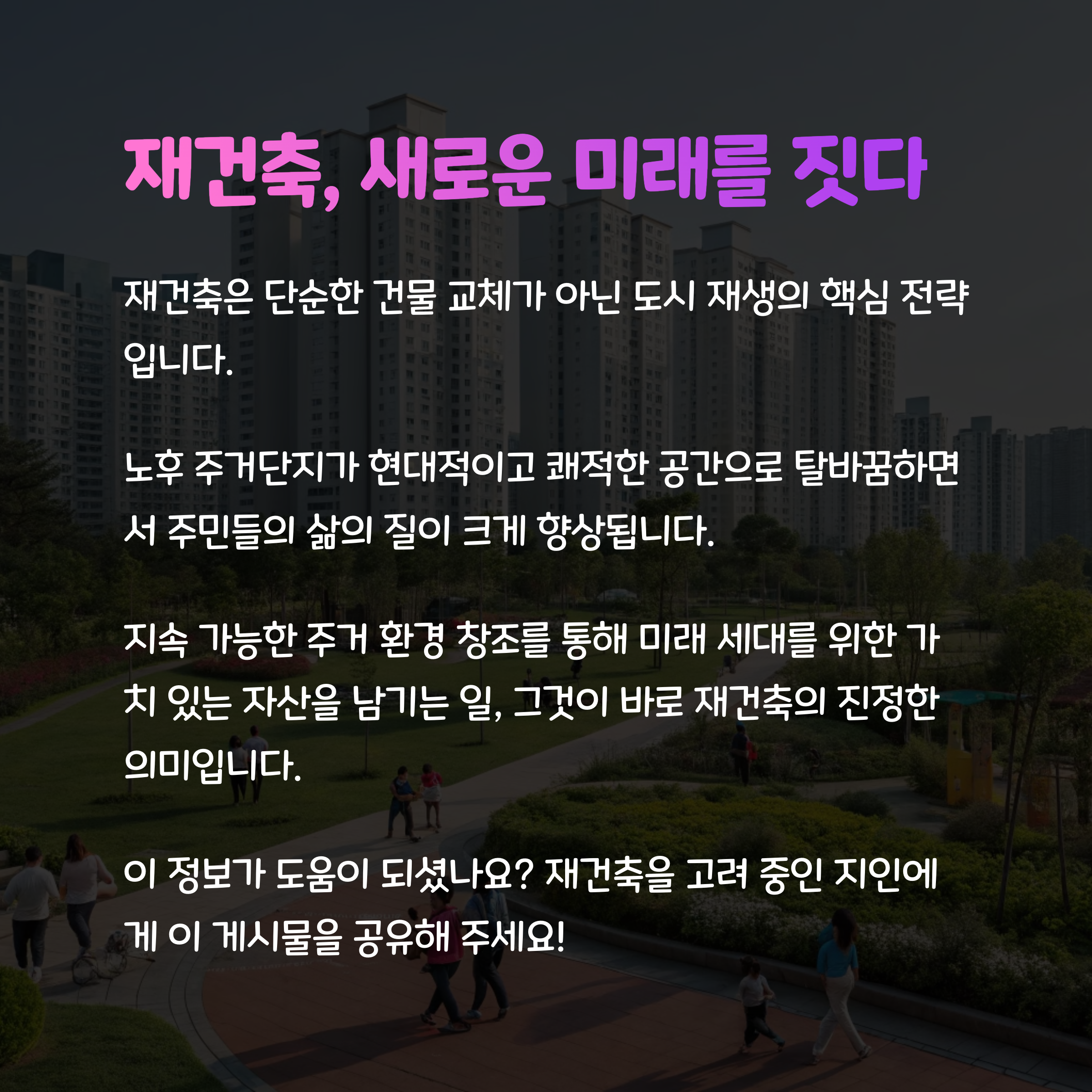 | 재건축은 주거 환경과 자산 가치를 높여줍니다. |