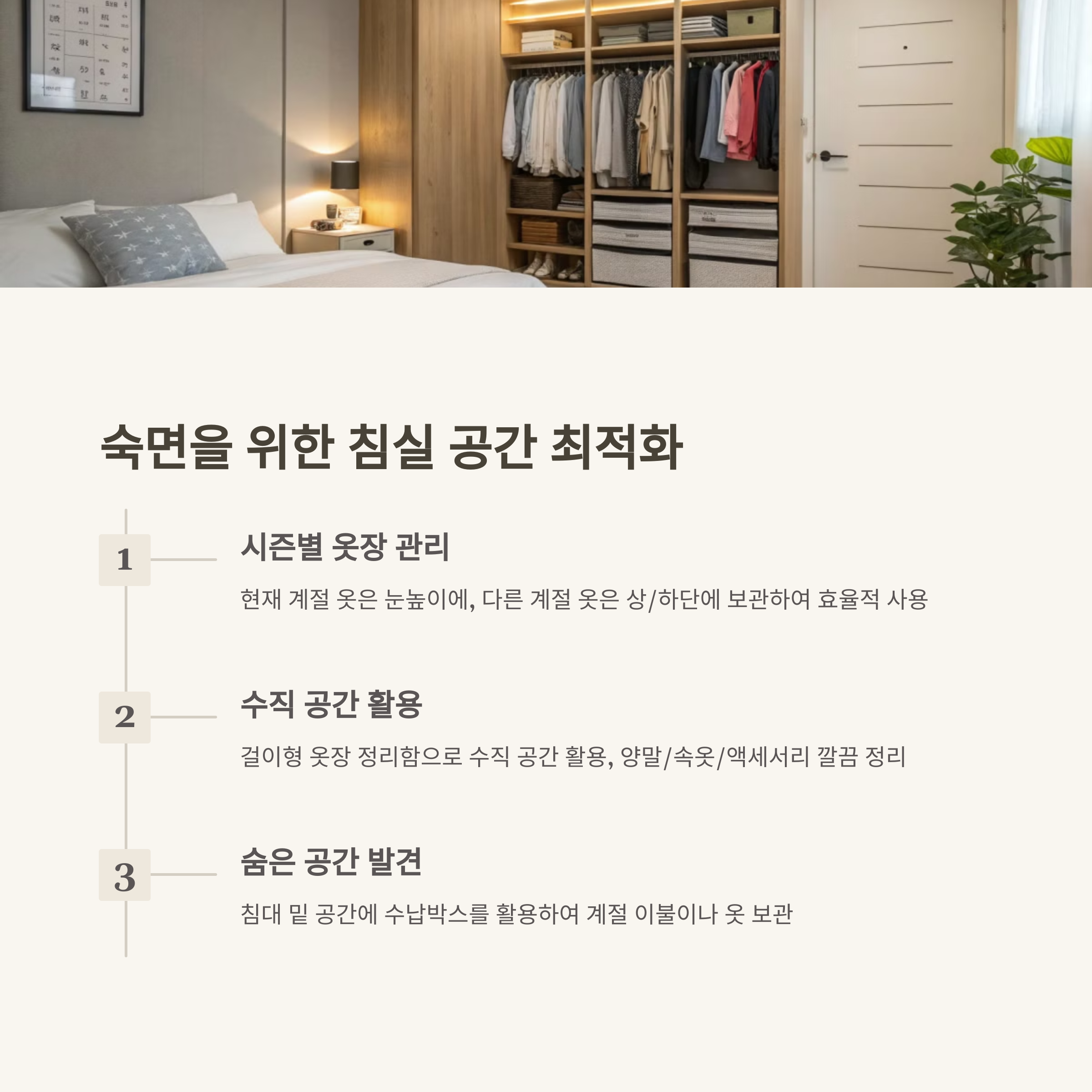 - 계절별 옷 정리: 계절이 지난 옷은 압축팩에 보관하여 공간을 절약하세요.
