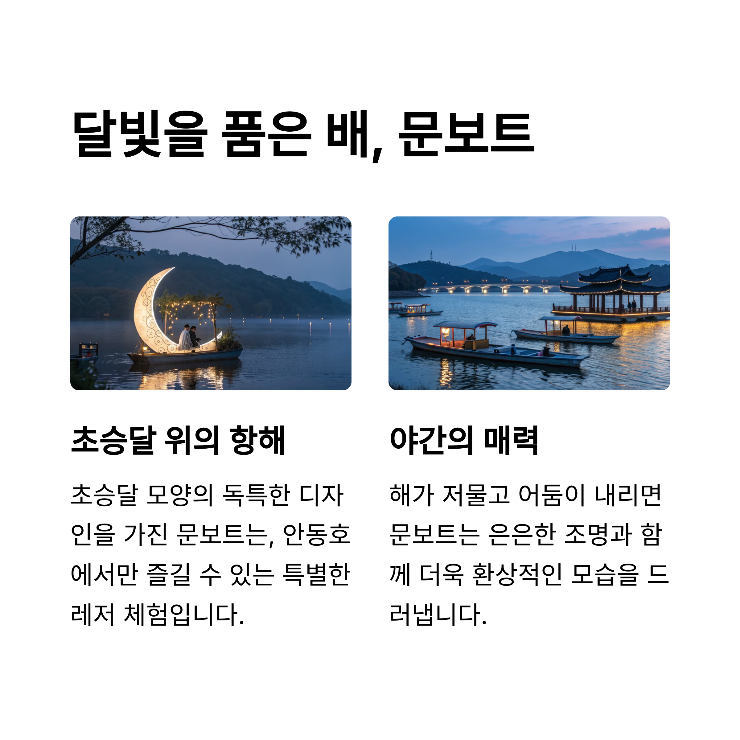 밤이 되면 빛과 그림자가 어우러져 더욱 감성적인 분위기를 연출합니다. 문보트 체험을 함께 하면 더욱 특별한 경험이 될 것입니다.