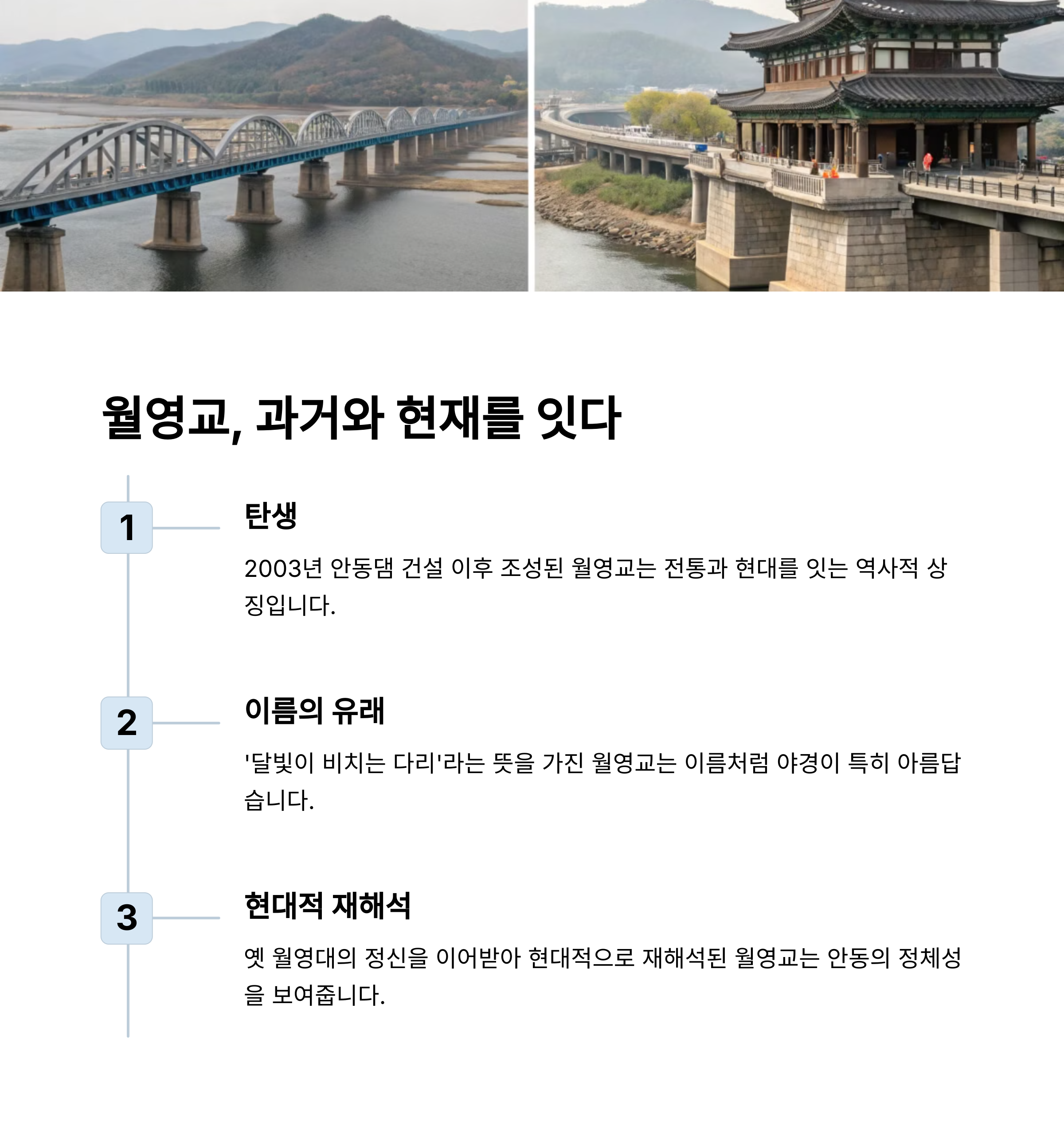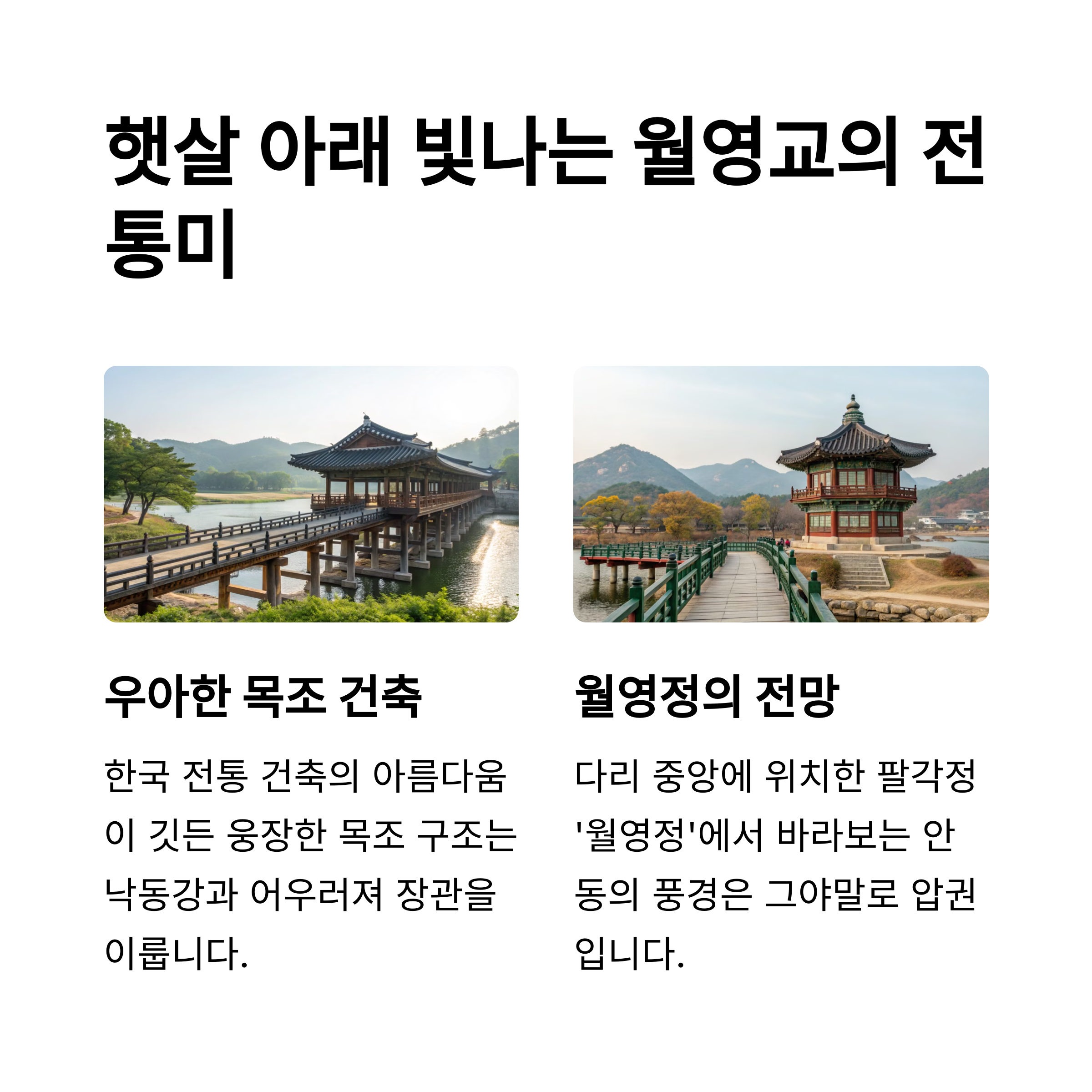 월영교는 안동을 대표하는 관광지로, 전통과 현대가 조화된 아름다운 장소입니다.