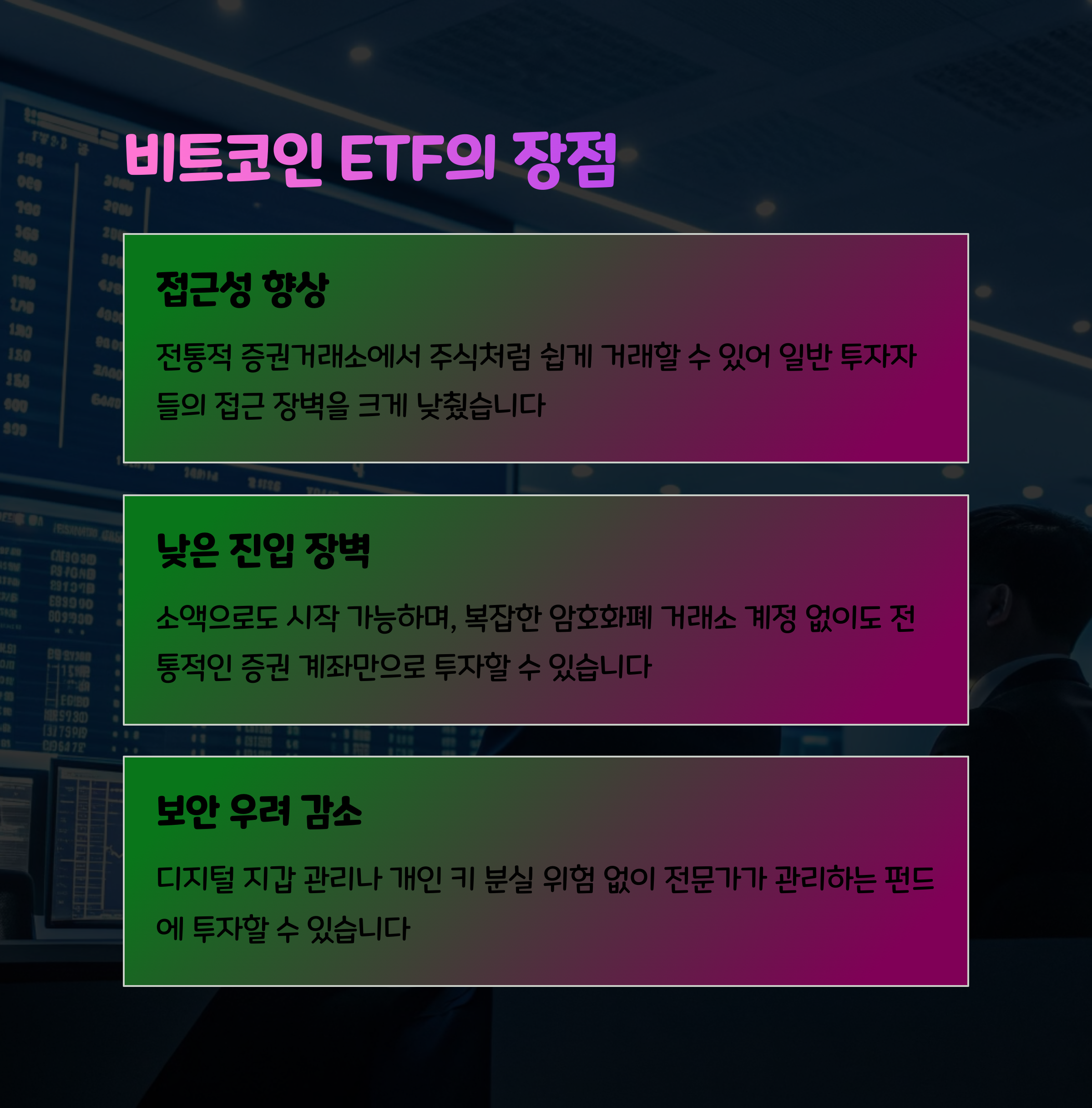 주로 비트코인 ETF와 같은 금융 상품을 통해 이루어지며, 그 수익률은 자산 가격의 변동성에 크게 의존합니다.🗝️