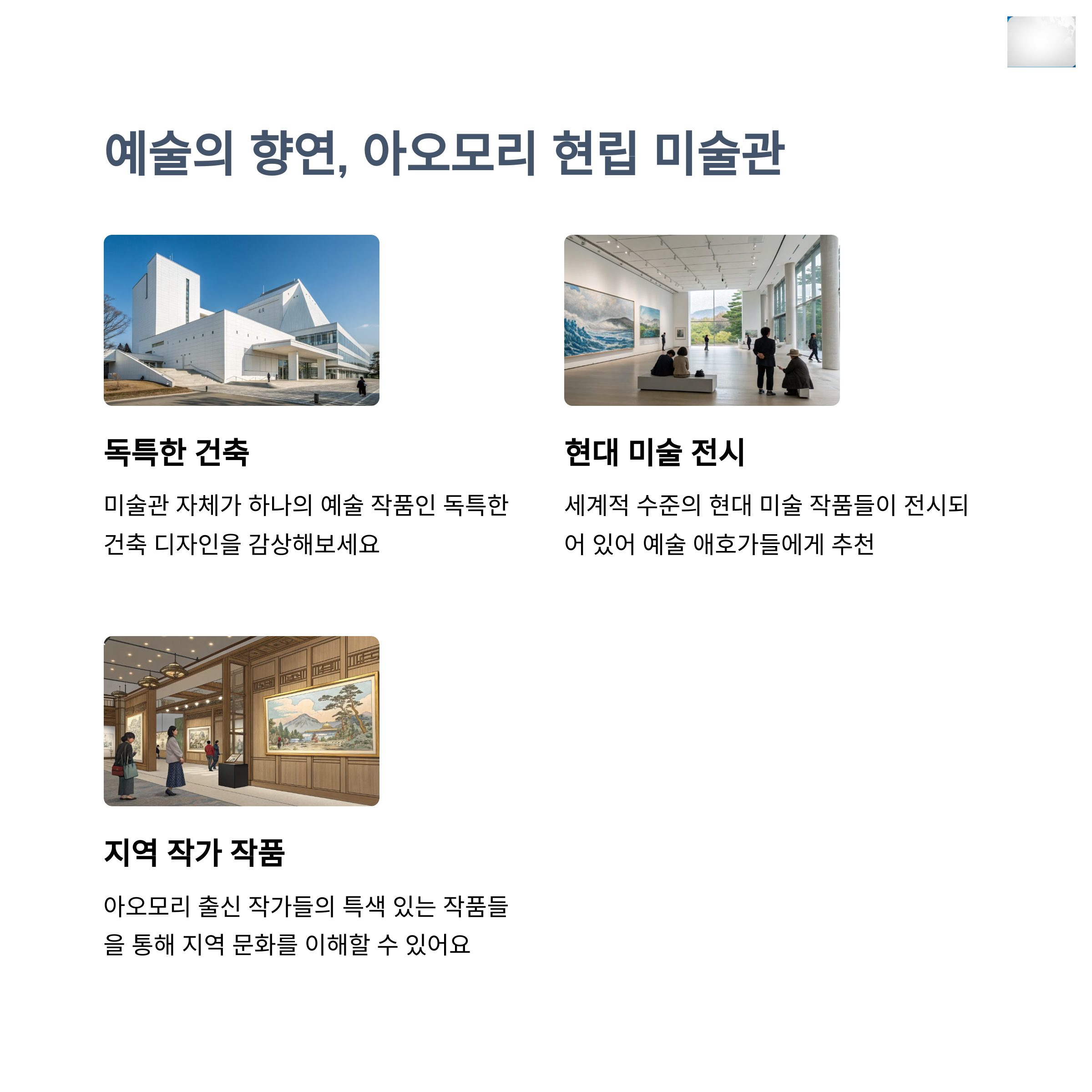 온천욕을 즐긴 후에는 아사무시 수족관에서 바다 생물을 관람하거나 아오모리 현립 미술관을 방문하여 예술을 한번 느껴 보세요.