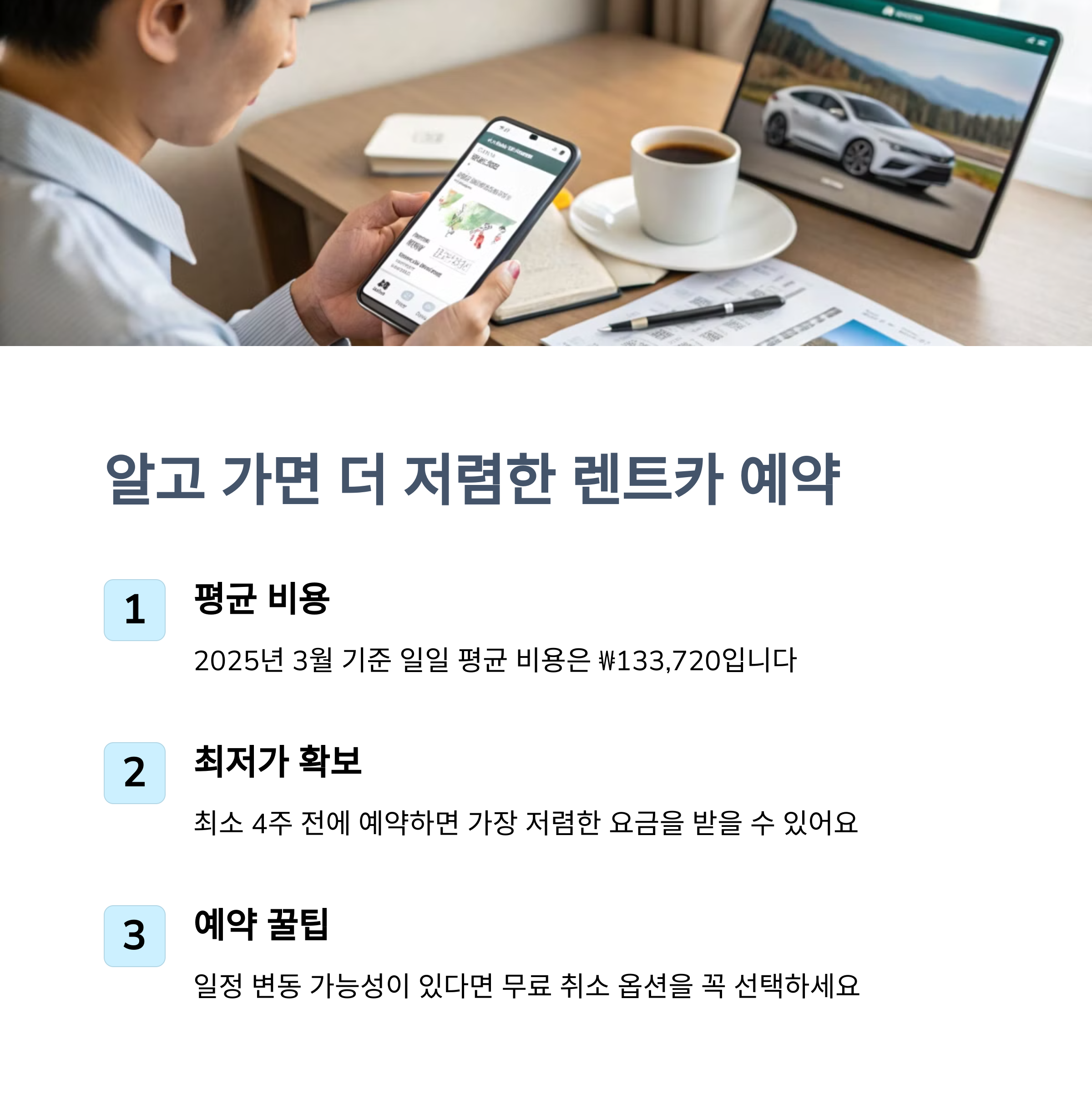 | 렌트카 평균 비용 | 2025년 3월 기준, 하루 평균 ₩133,720 |