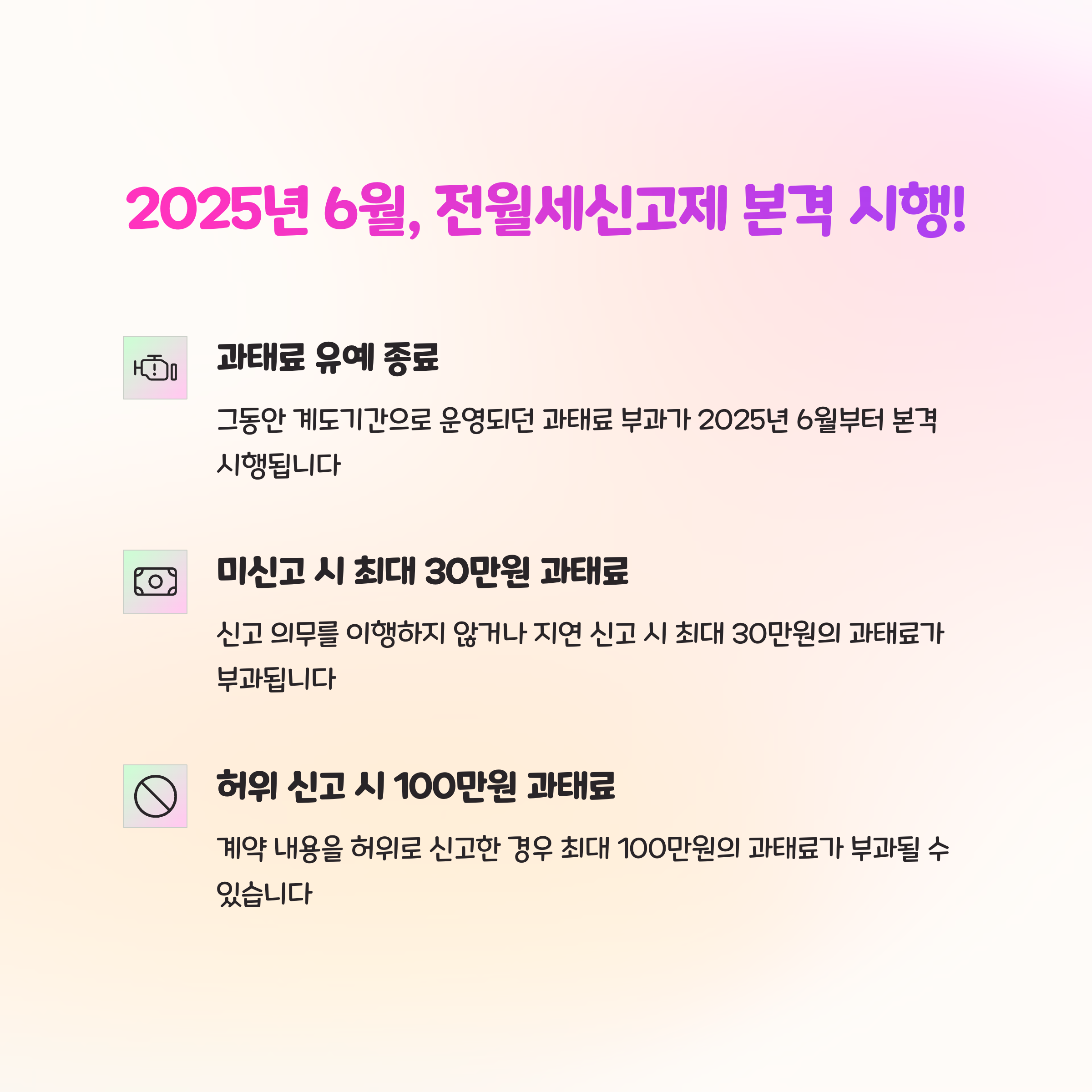하지만 전월세신고제는 2025년 6월부터 본격 시행되므로, 실수요자라면 지금부터 제도 숙지와 대응 전략을 마련해야 합니다.