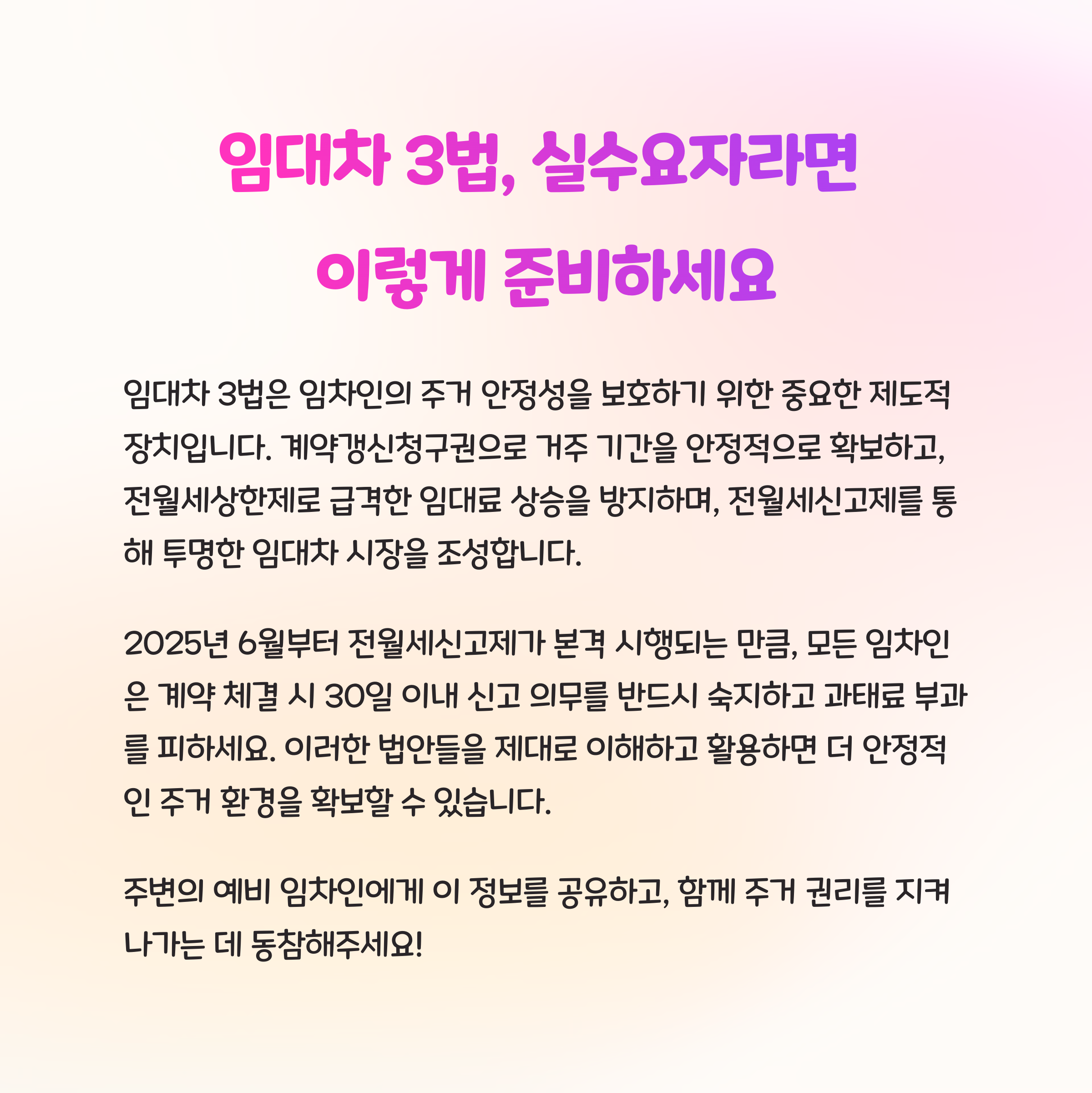 이번 포스팅에서는 실수요자가 꼭 알아야 할 법 개정 포인트와 주거 안정성을 지키기 위한 실질적인 팁을 정리해 드립니다.