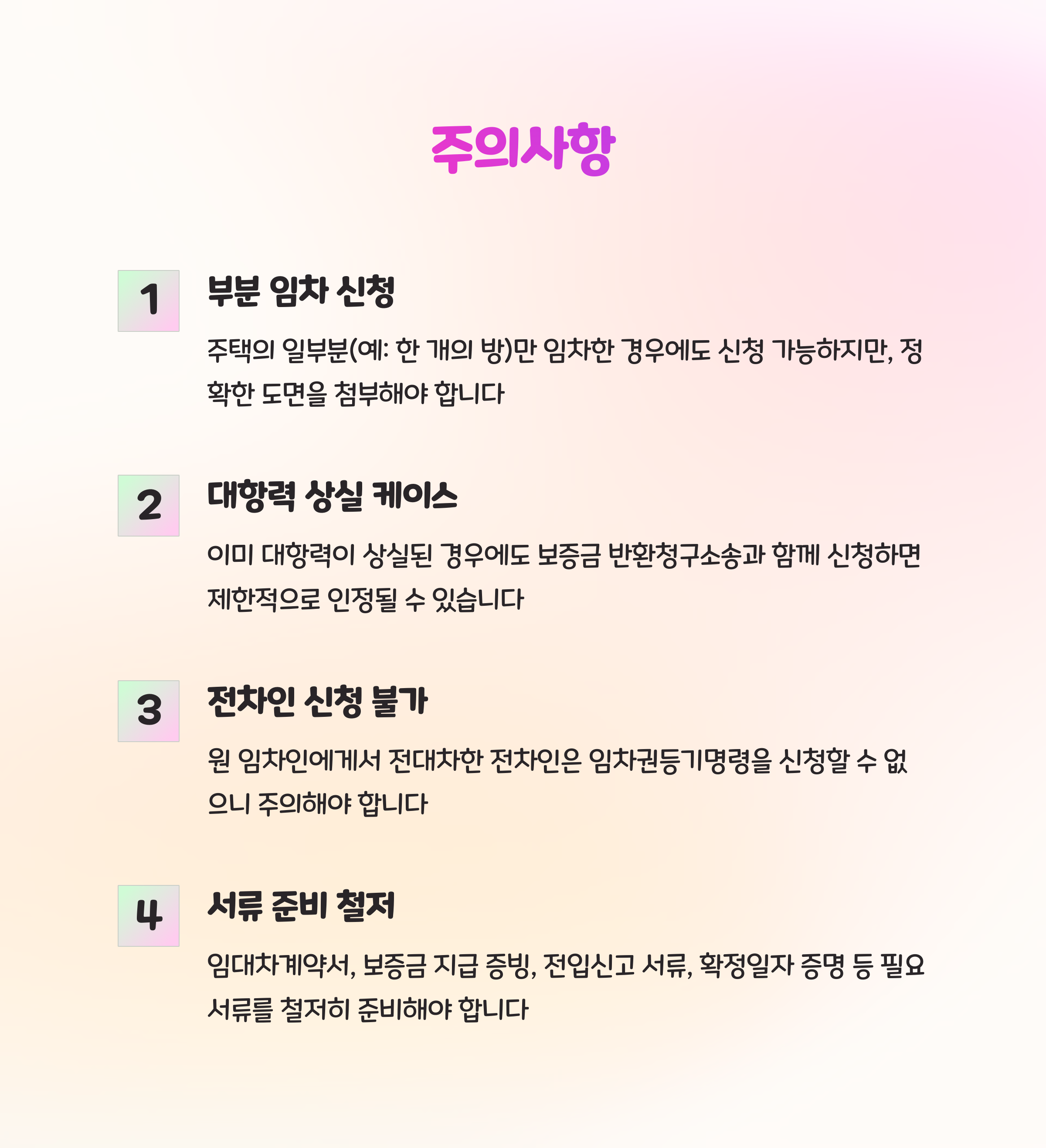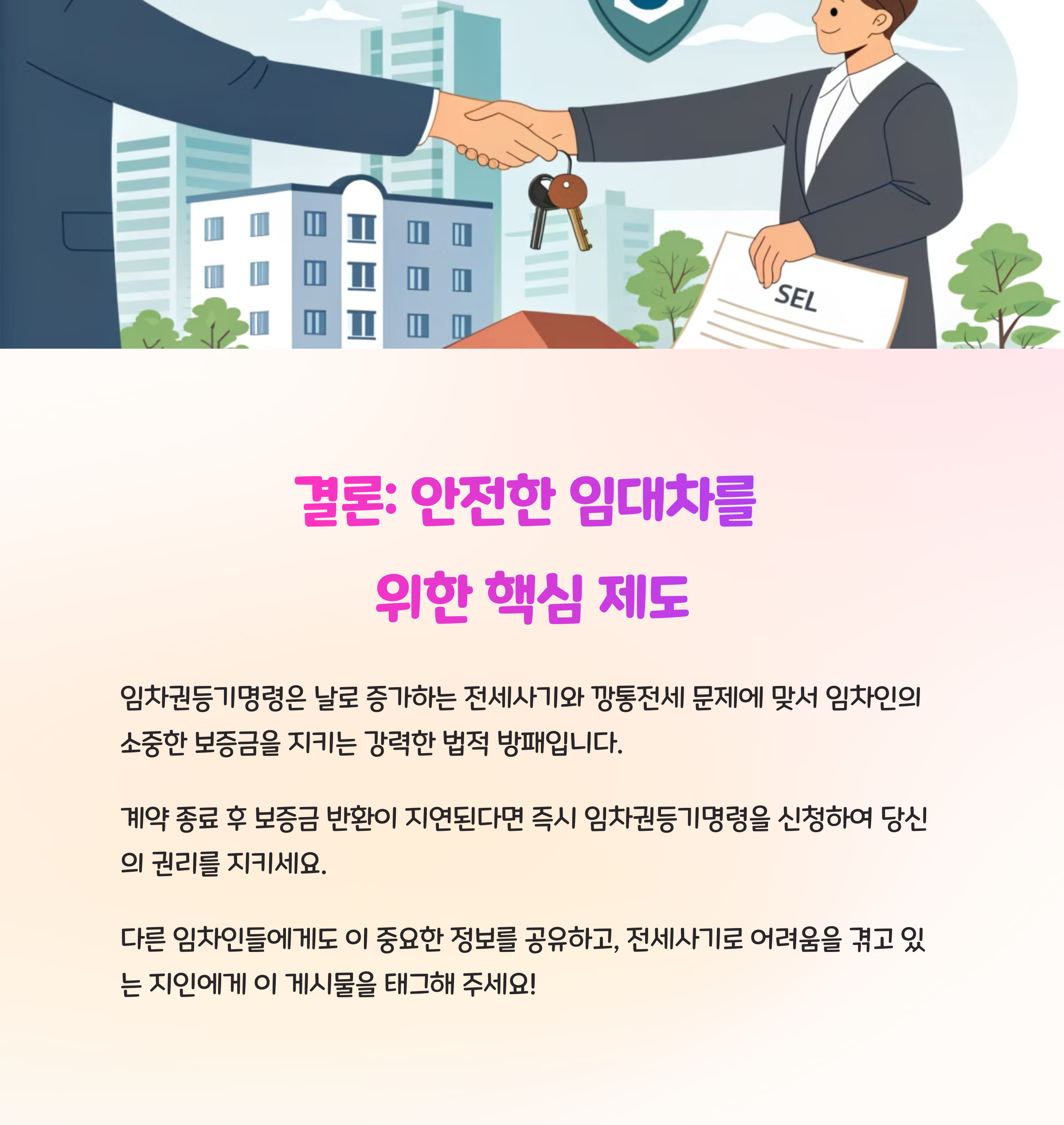 임차권등기명령은 단순한 민원 절차가 아니라, 임차인의 권리를 법적으로 강력하게 지켜주는 제도입니다.