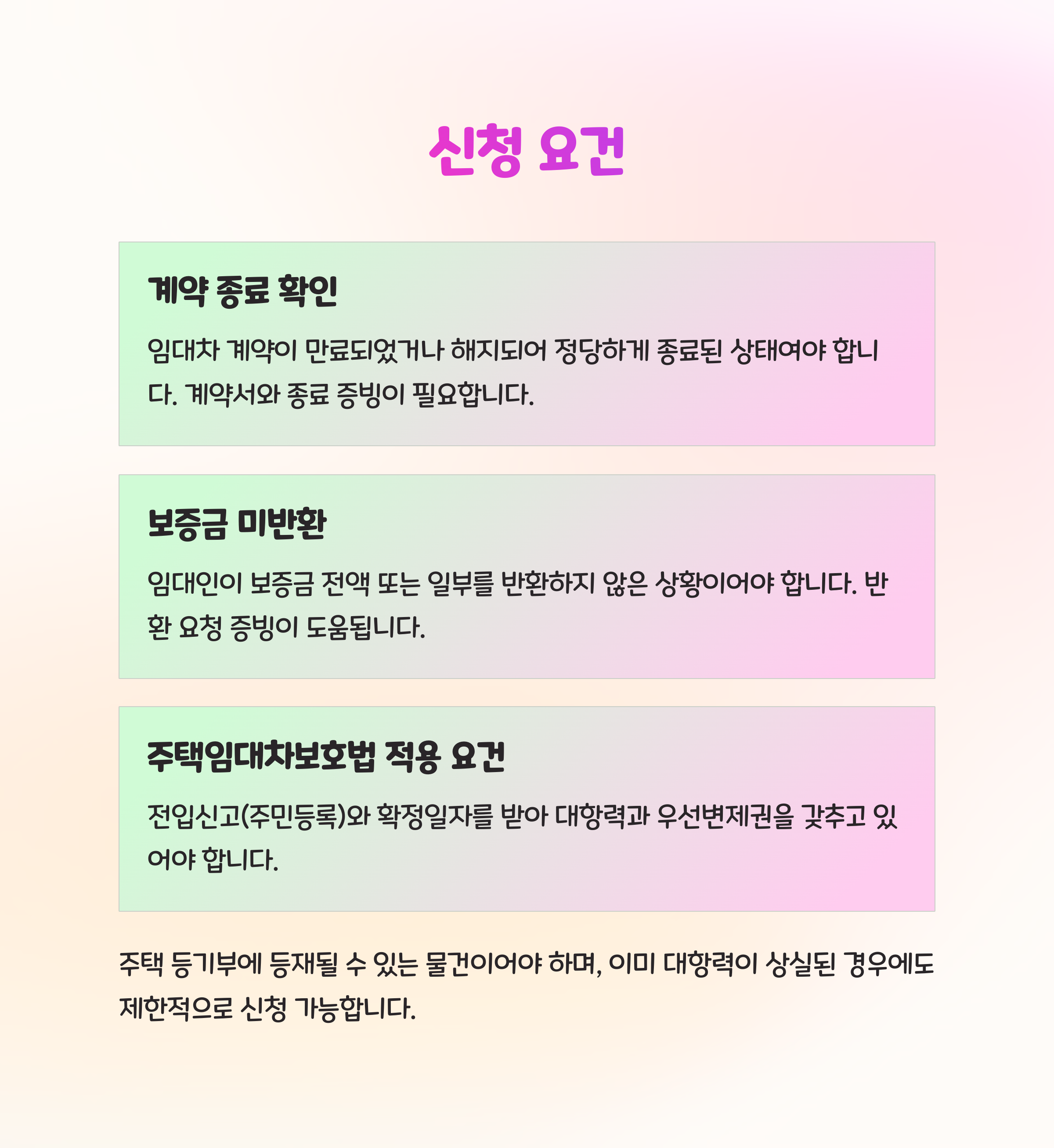 | 주요 대상 | 계약이 끝나고도 보증금을 받지 못한 모든 임차인 |