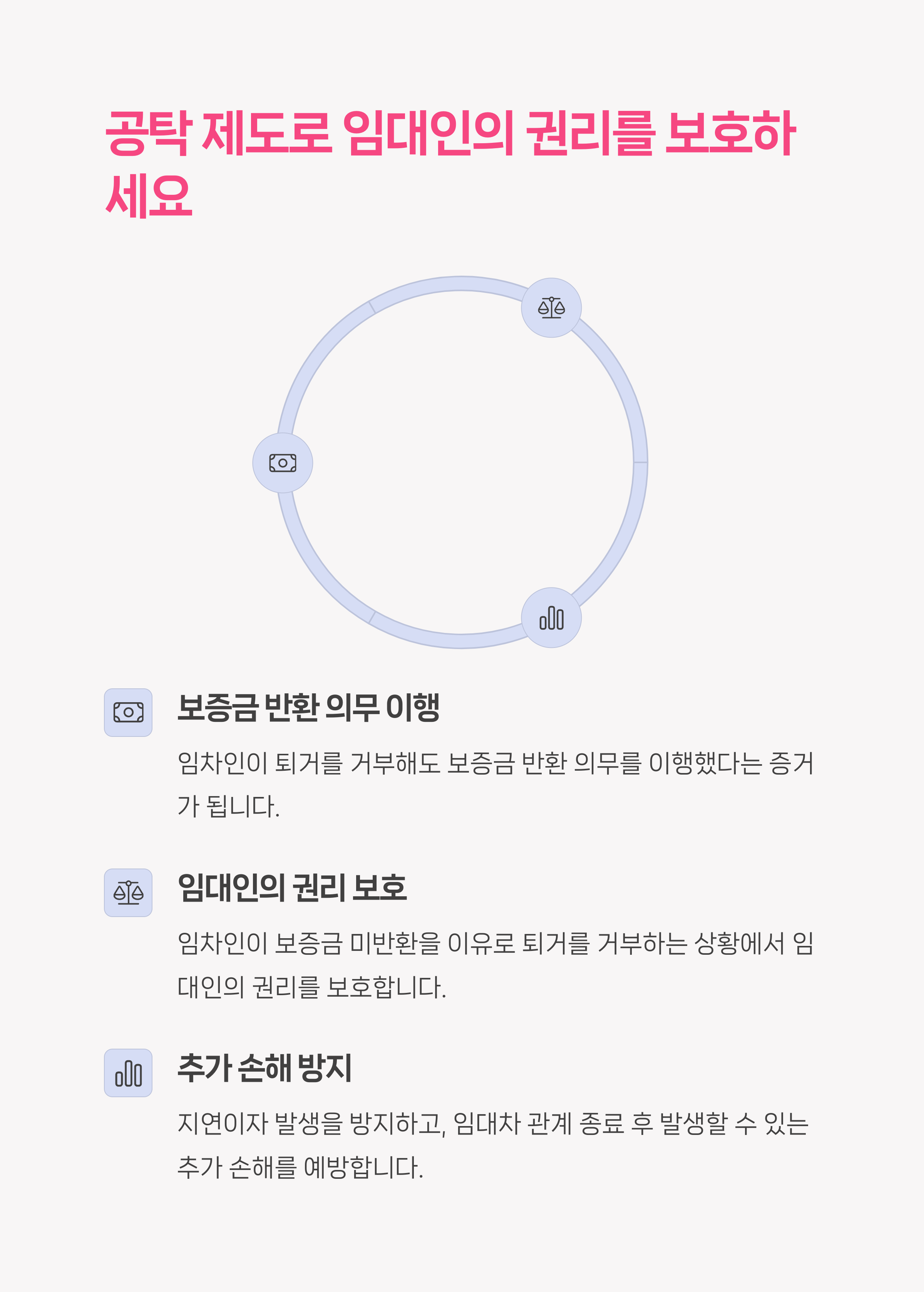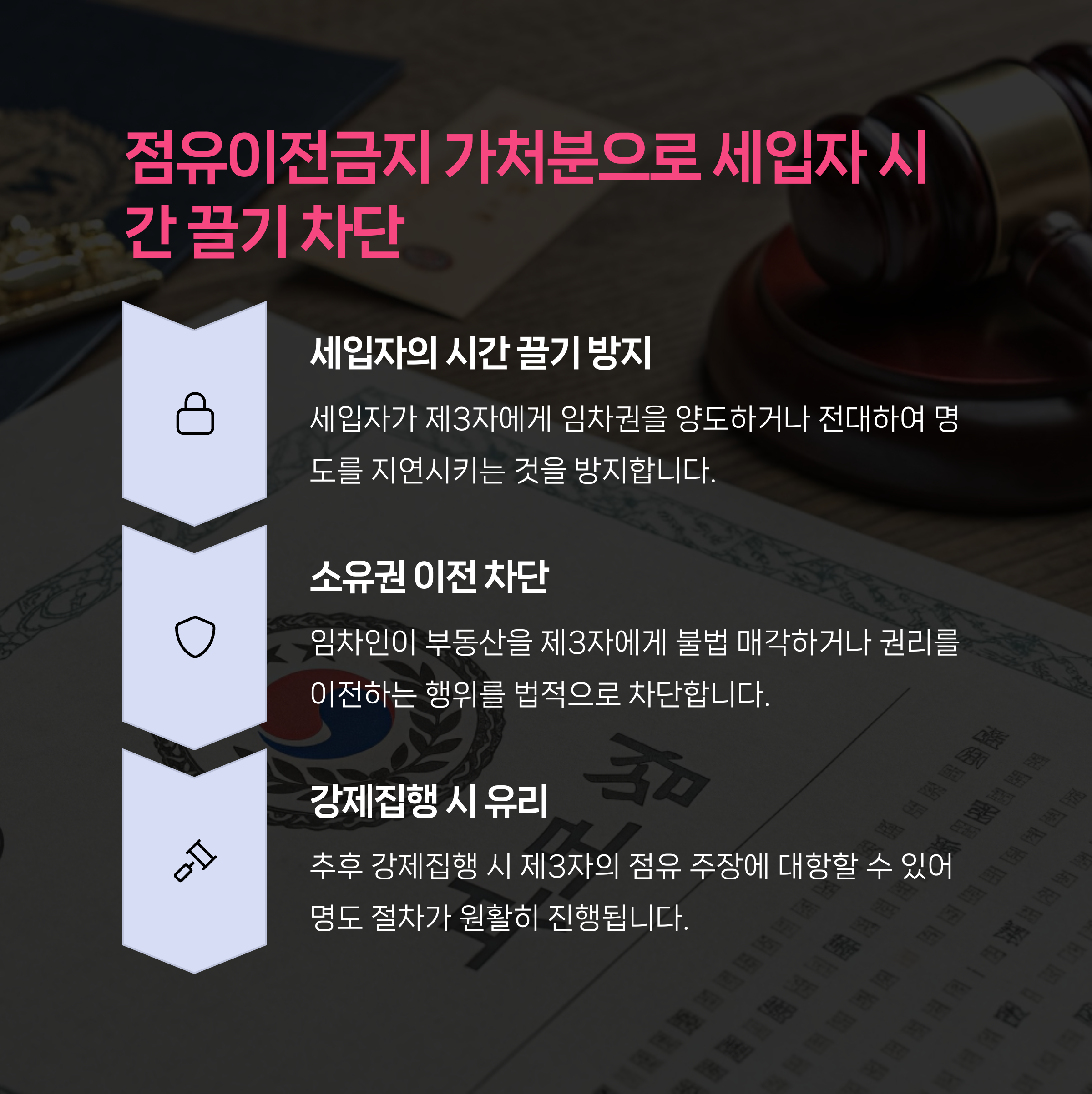 | 계약 해지 통보 | 점유이전금지 | 공탁 제도 |