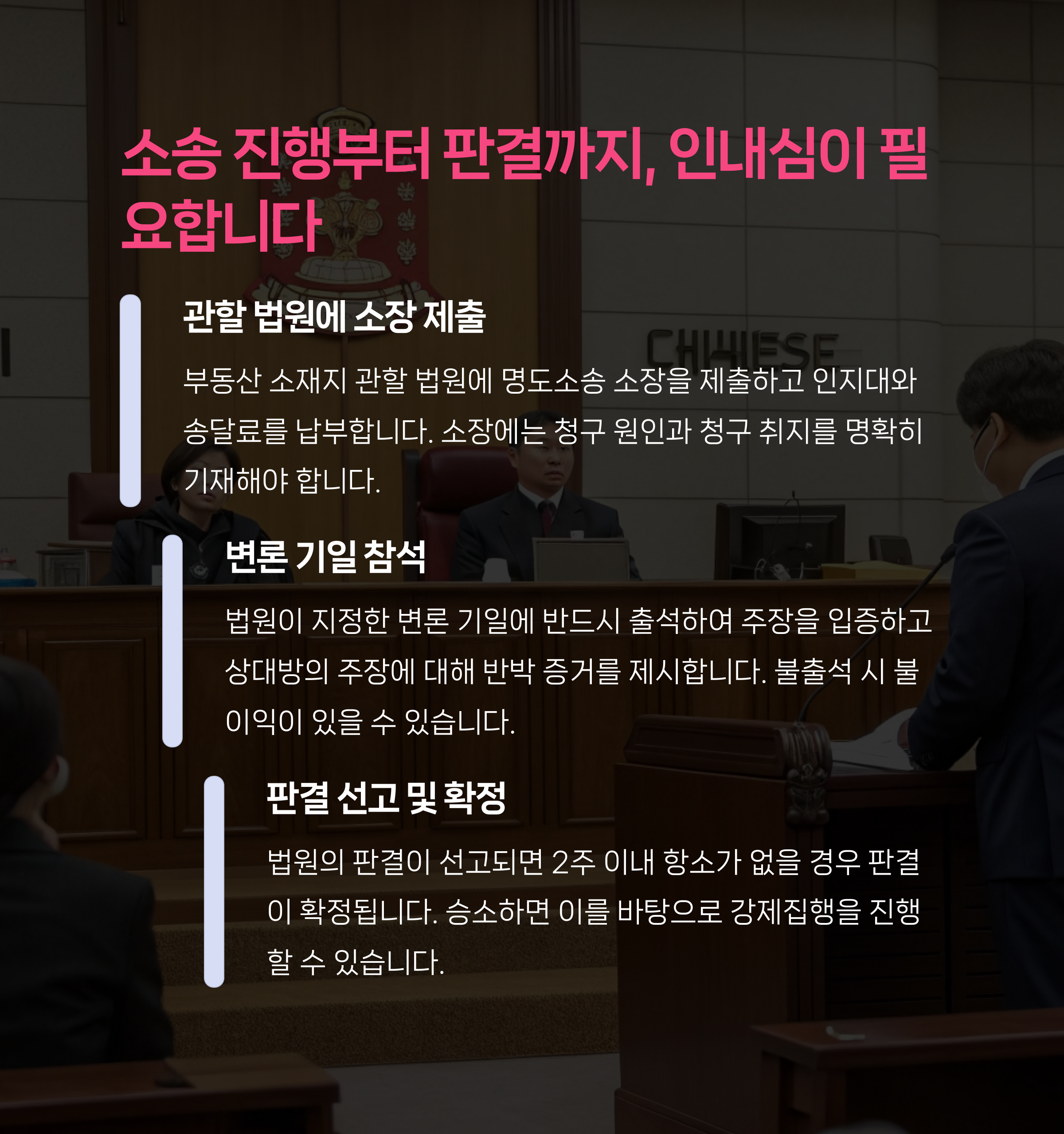 📢명도소송은 다음과 같은 절차로 진행됩니다.