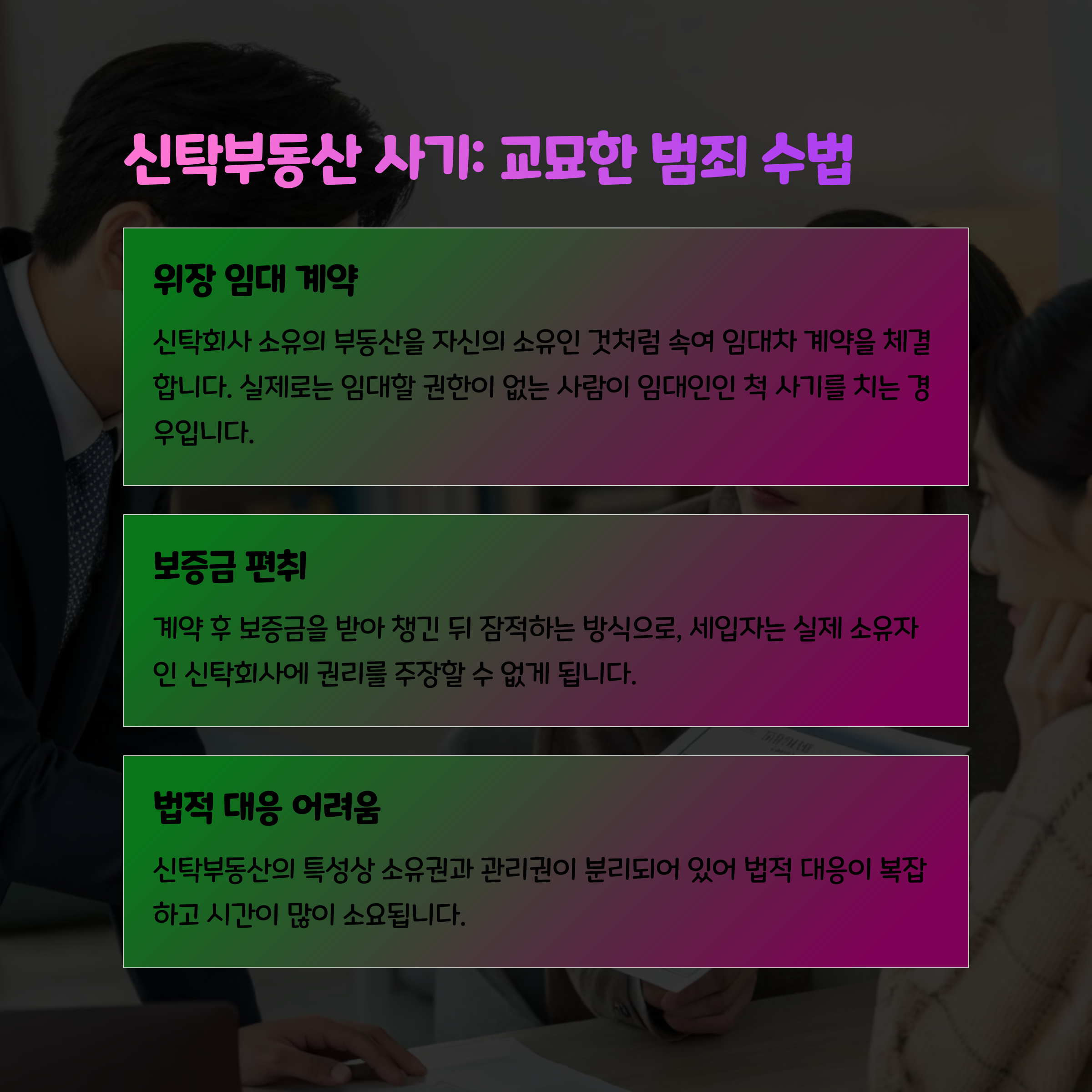 또, 신탁사 소유의 주택을 일반 주택처럼 속여 계약하고 보증금을 가로채는 사례도 있으며, 사회 초년생들이 전세 사기에 무방비로 노출되고 있다는 현실은 무척 안타깝습니다. 😢