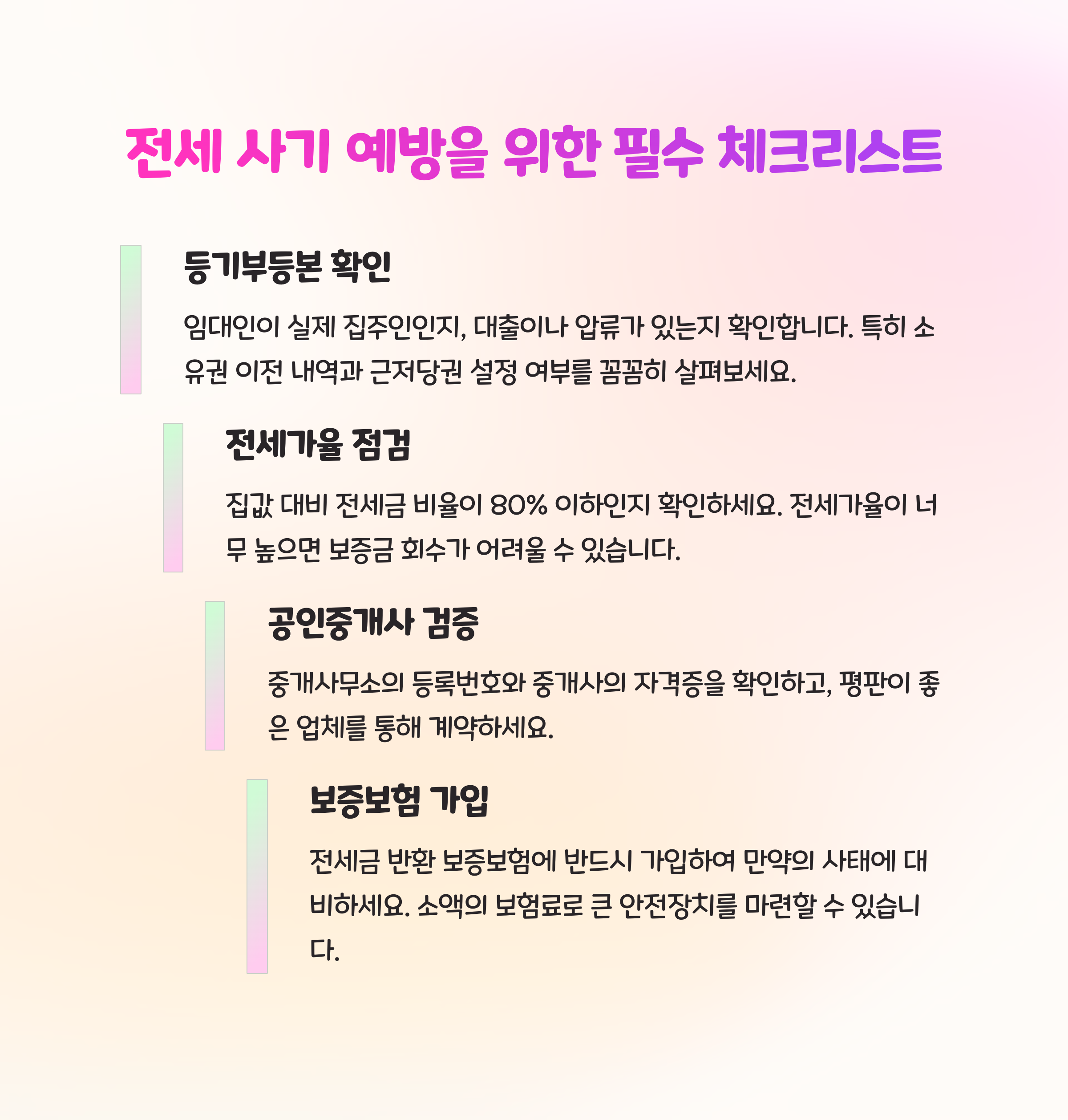 | 전세가율 80% 이상 주의 | 계약 전 임대인 부채 확인 필수 | 중개사 신원 확인 중요 |