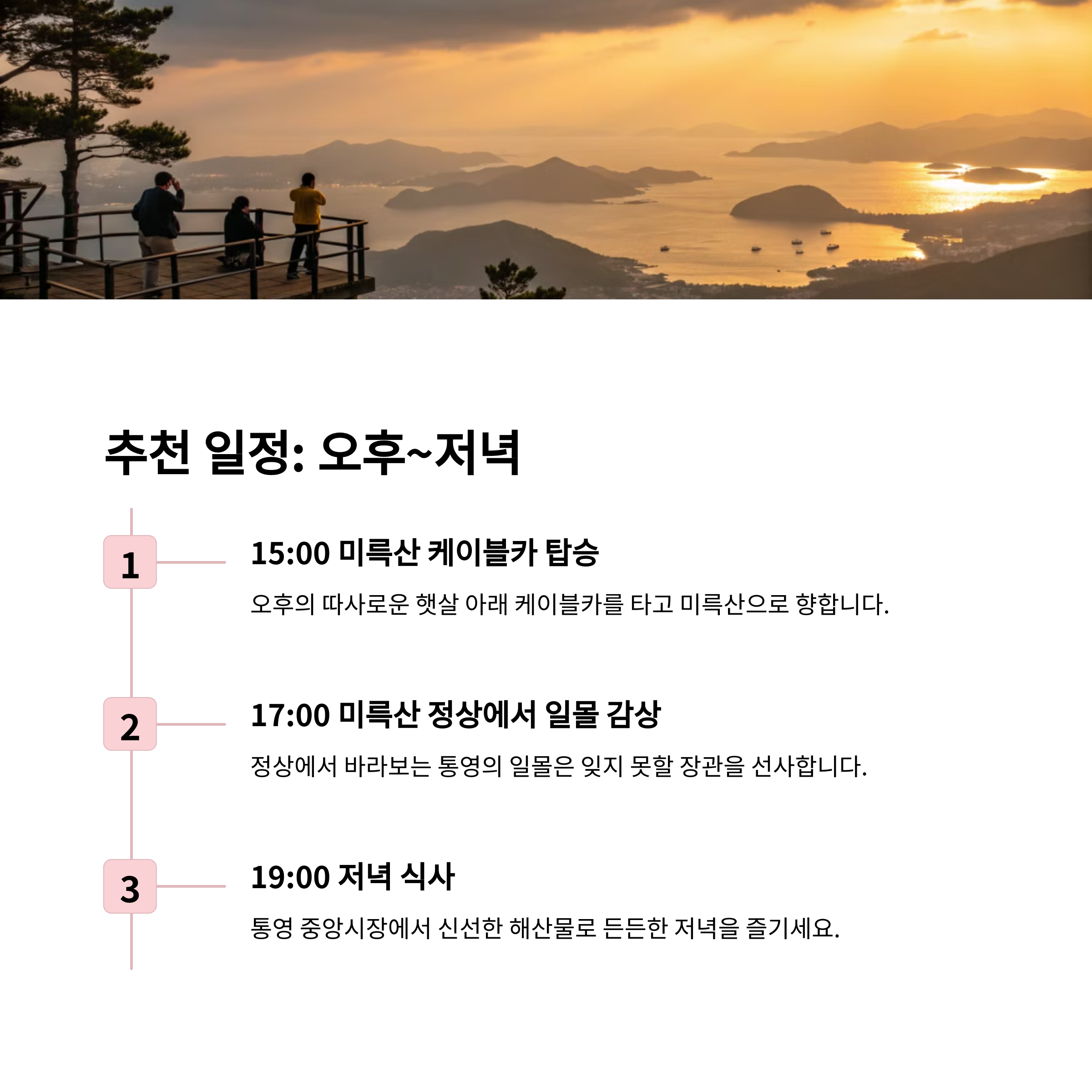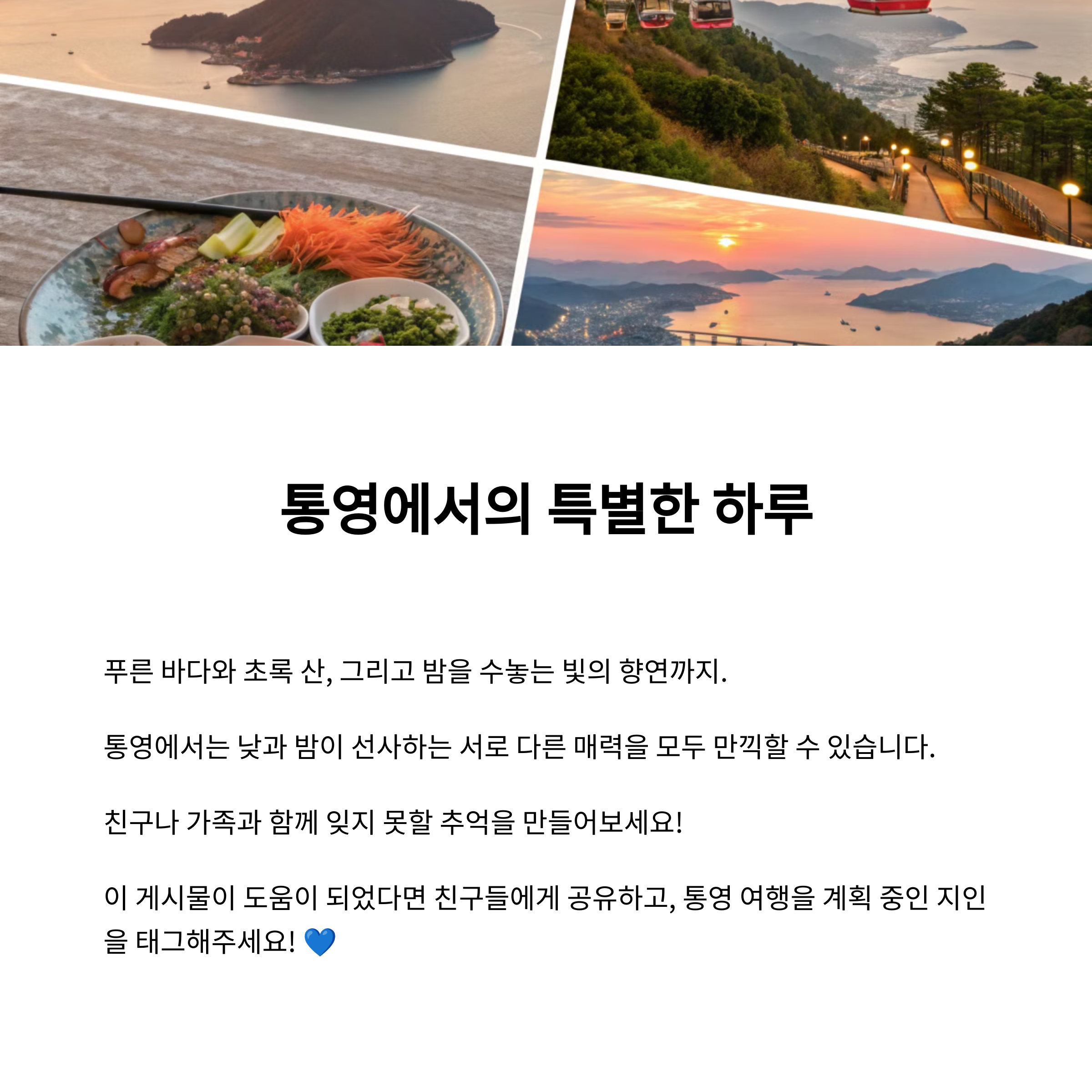 통영에서 하루를 보낸다면 알찬 일정이 중요합니다. 아침부터 저녁까지 알차게 보낼 수 있는 일정을 소개합니다.