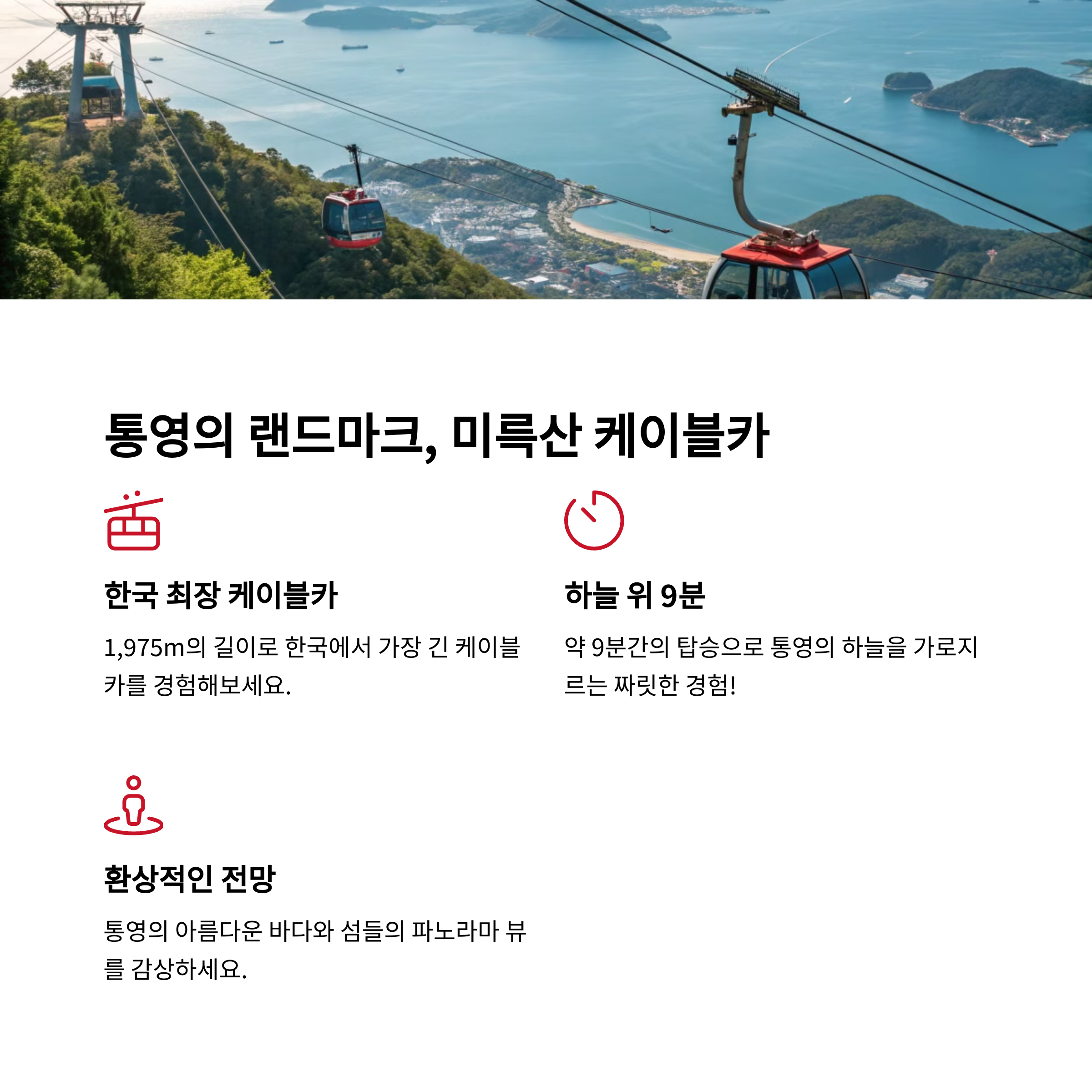 - 길이 1,975m로 한국에서 가장 긴 케이블카