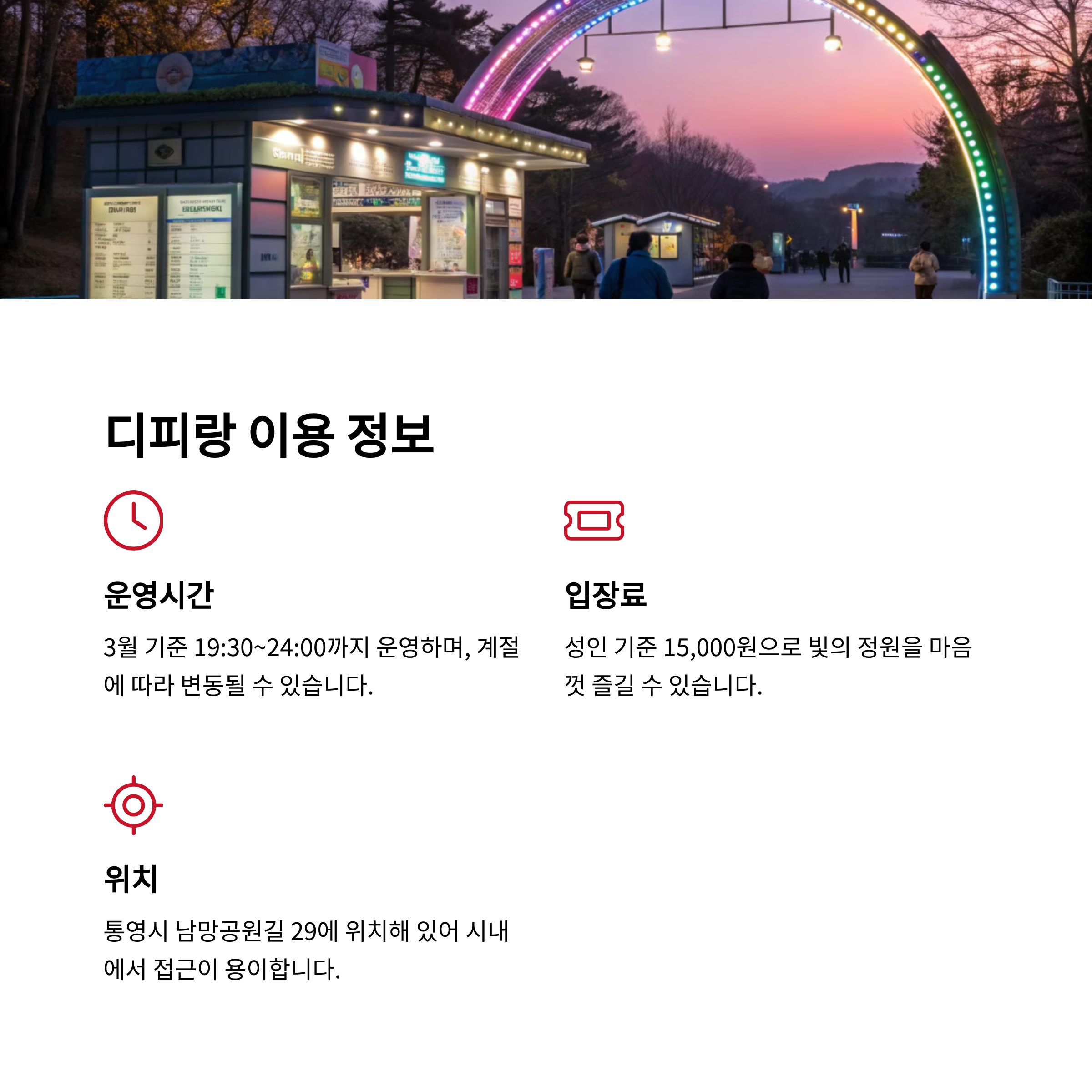 | 운영 시간 | 입장료 | 위치 |