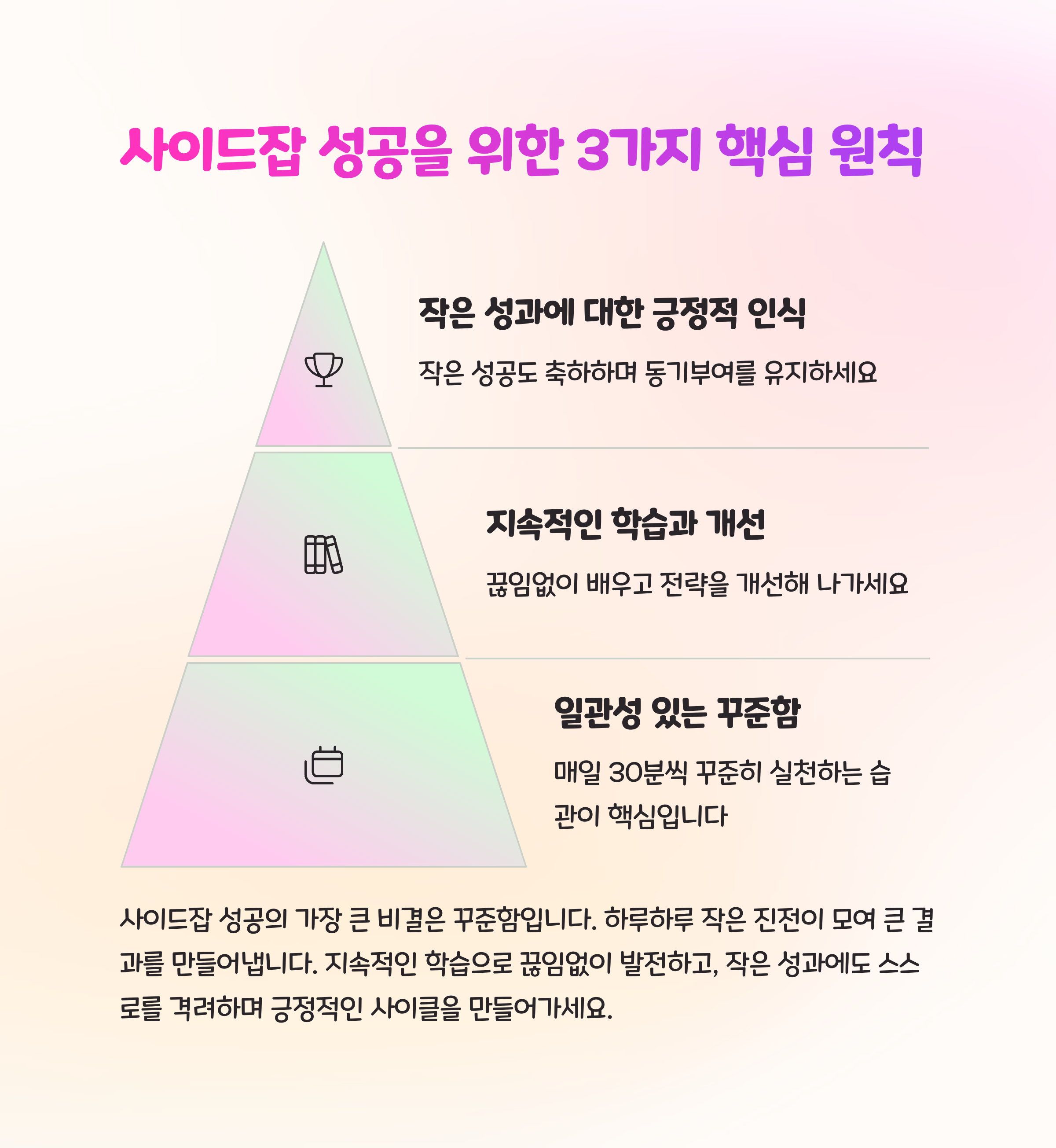 퇴근 후 30분이라는 짧은 시간이 인생을 바꾸는 기회가 될 수 있습니다. 사이드잡은 단순한 돈벌이를 넘어, 나만의 브랜드와 자산을 만들어가는 여정입니다.