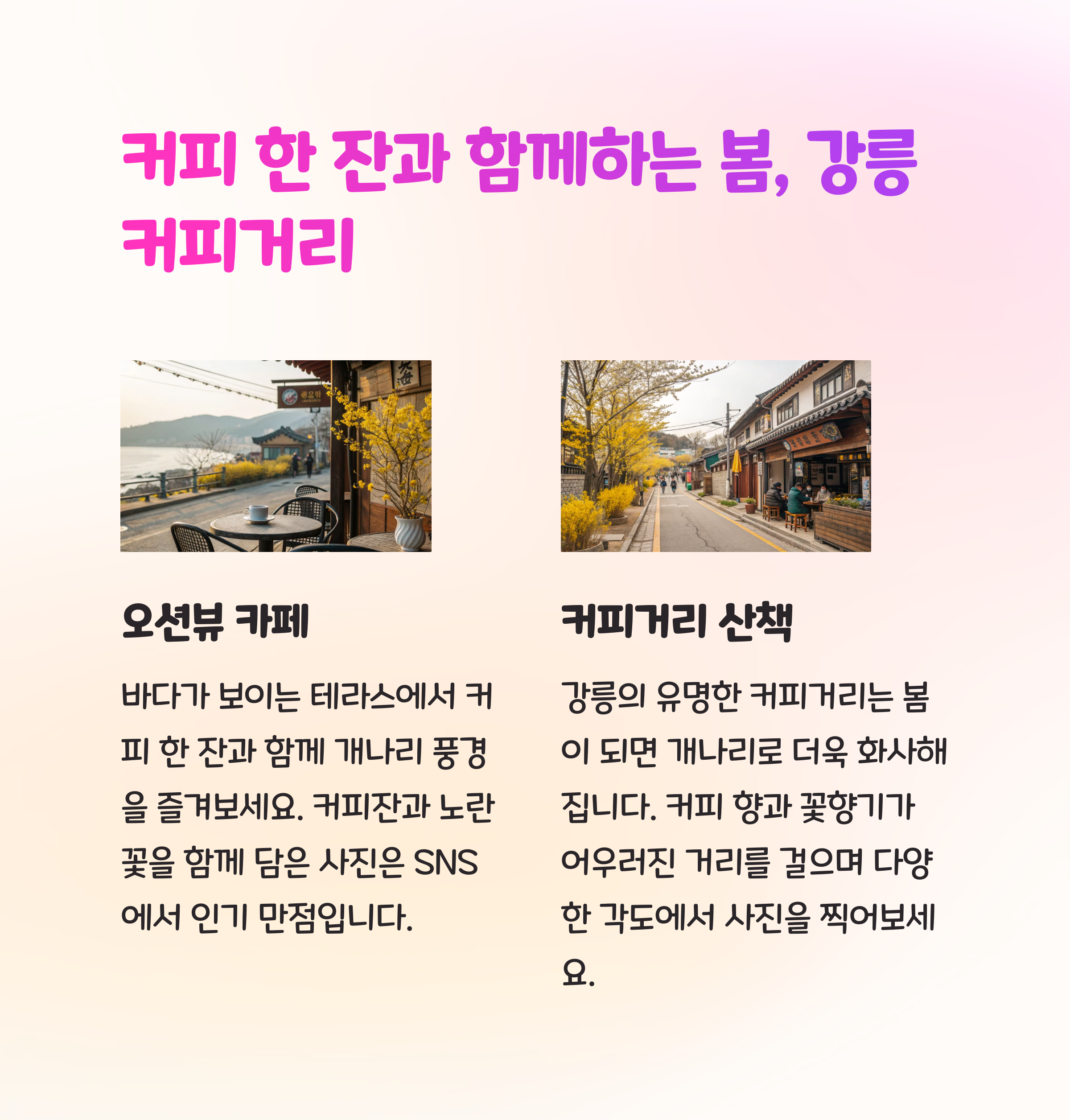 | 강릉 개나리 명소 | 로컬 포토존 | 방문 팁 |